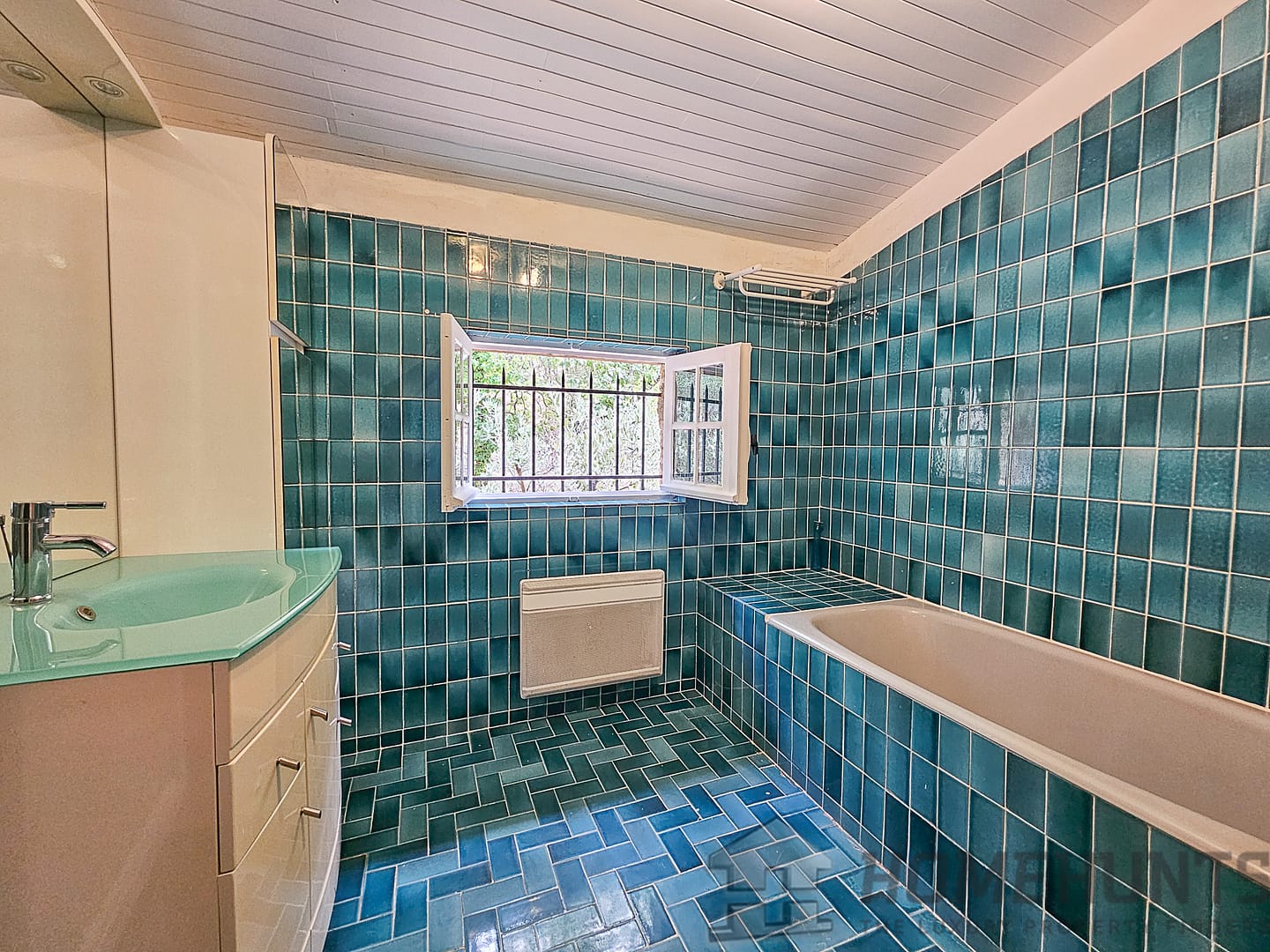Upstairs, three bedrooms with washbasins, one extended by a south-facing terrace, complete the night area along with a bathroom and a separate WC. Each room is equipped with reversible air conditioning, ensuring optimal comfort all year round.