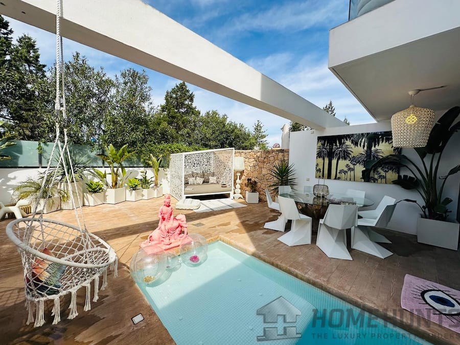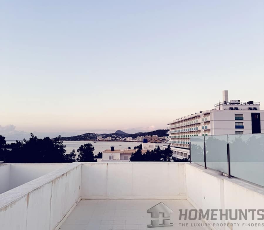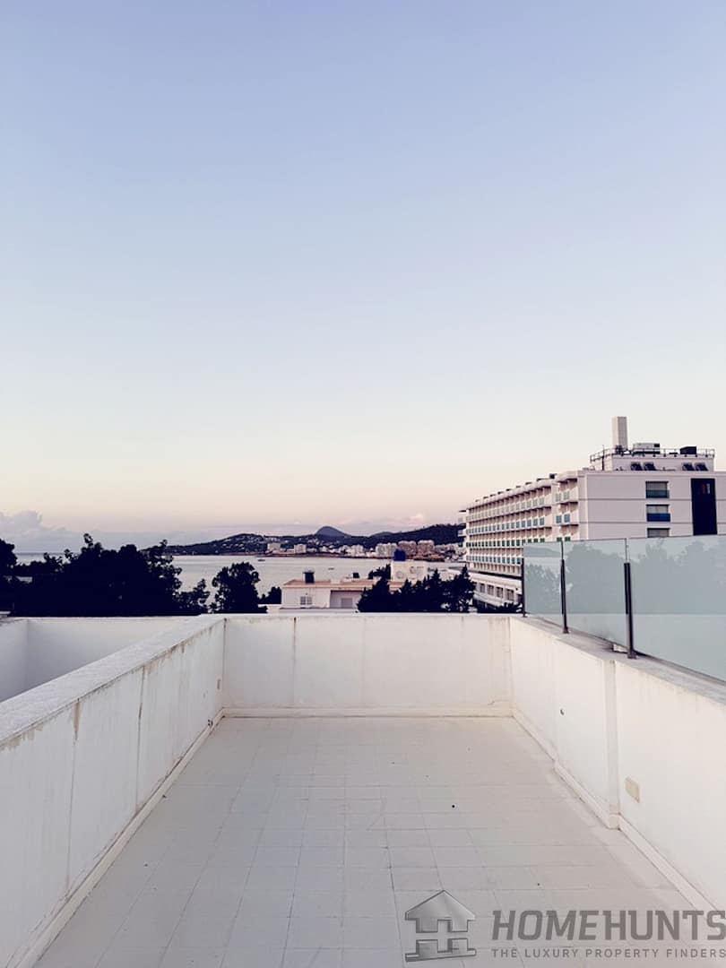 Roof Terrace has got 360 view and front view to the sea and San Antonio Bay. Jacuzzi Connection has been installed ready to create a fabulous luxury relaxation with sea view, second dining area or chillolut Area with Sunbeds and perfect Yoga and Mediation Area.