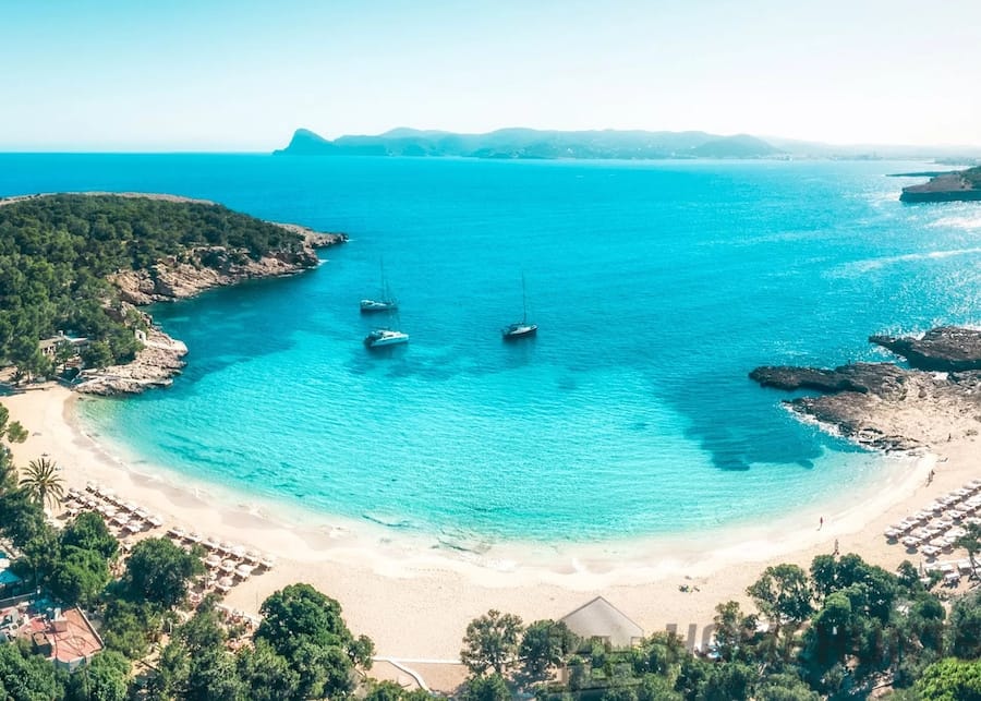 The beaches of Cala Tarida and Cala Bassa, famous for their turquoise water, best beaches and breathtaking sunsets, are just a 10-minute drive away.