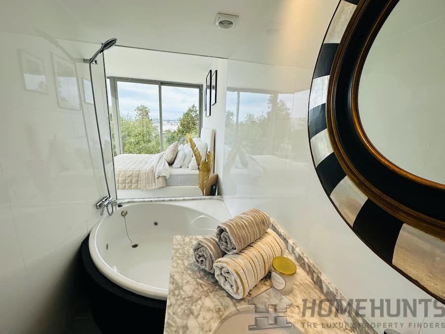3 bedrooms with own bathrooms (each with shower, toilet and one also with bath-tube with Jacuzzi function. Bedrooms and Shower rooms come with sea views. Bedrooms have got built-in wardrobes to save space.