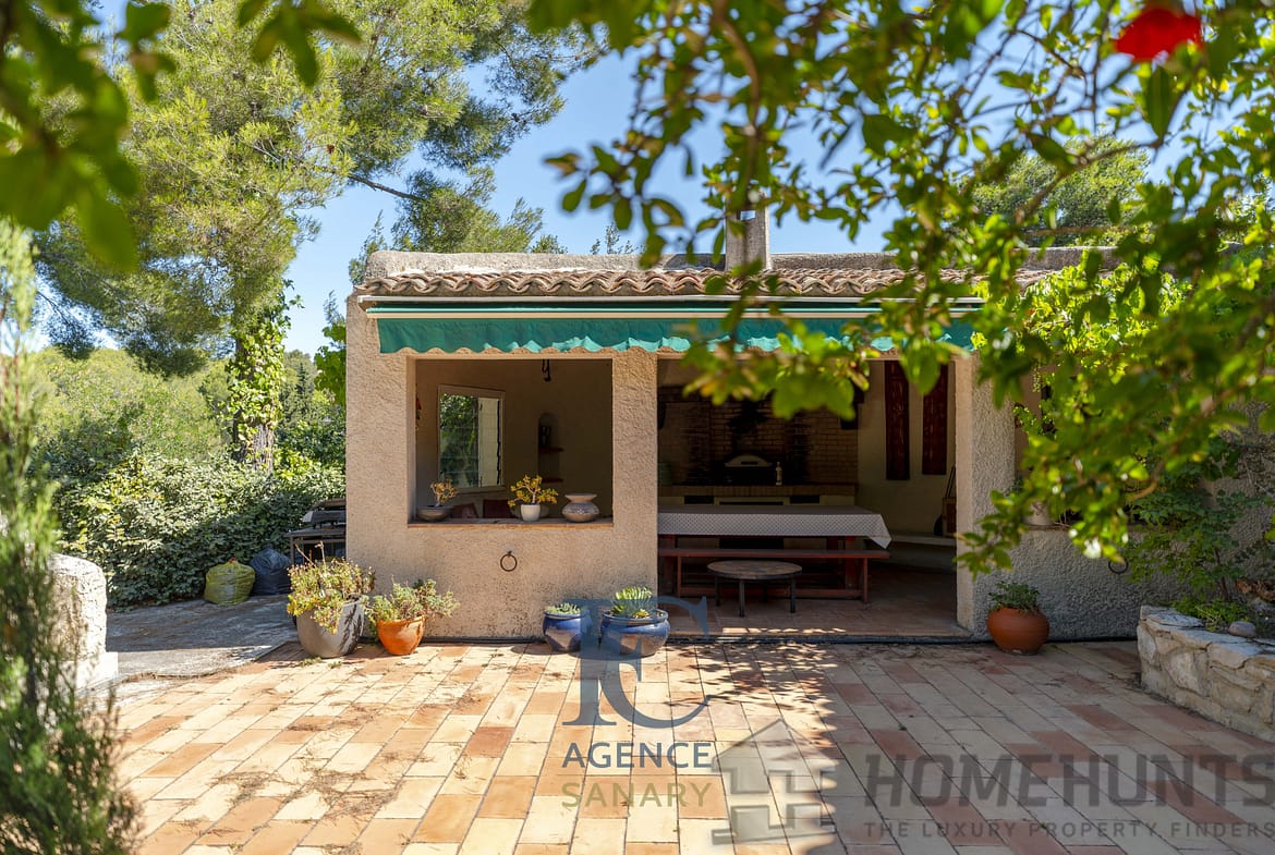It is built on a landscaped and wooded plot of 2,300 m2, with Mediterranean species, with a swimming pool and offering a beautiful panoramic view.