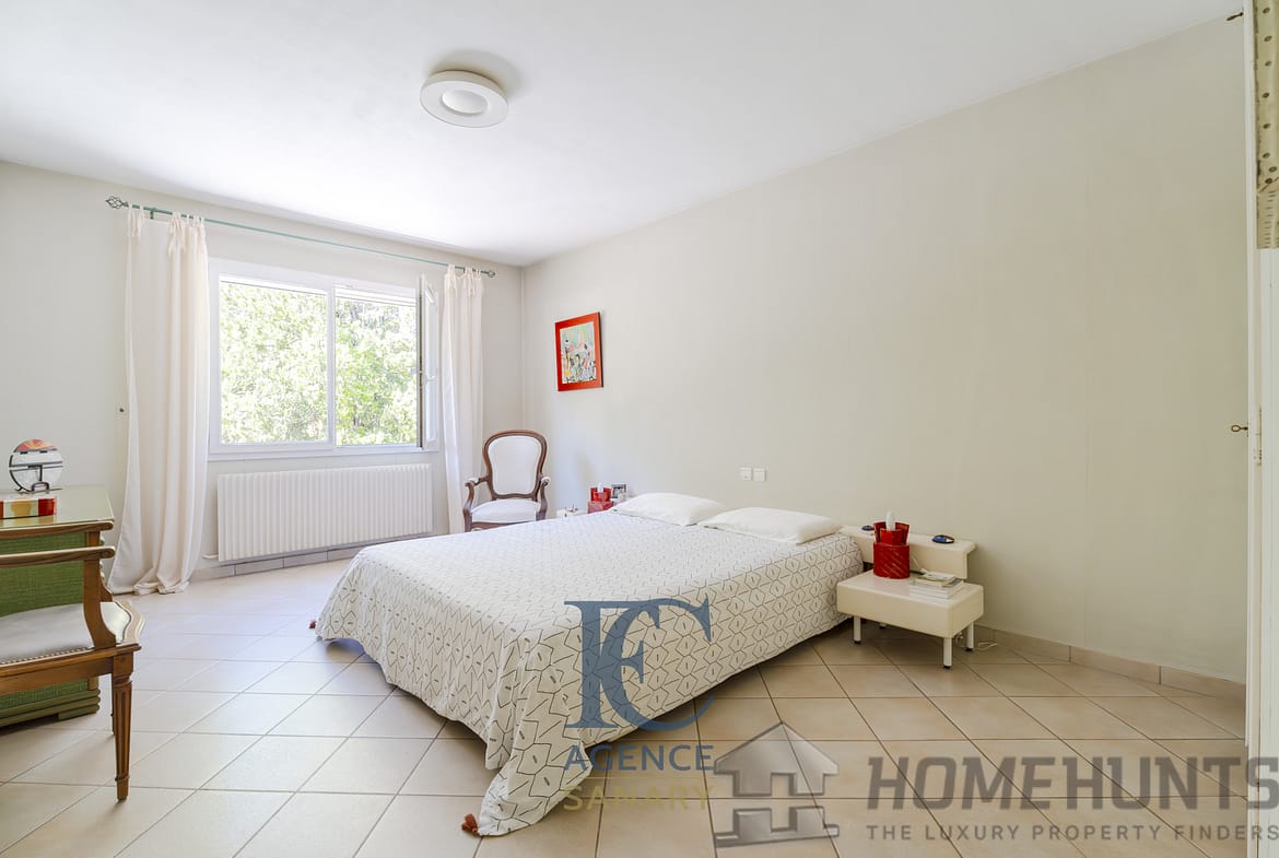 It consists of a large entrance opening onto a bright expansive 70 m2 living room, equipped with a fireplace, a separate 22 m2 kitchen, five bedrooms, two of which have a shower room and WC, a laundry room, a shower room and a WC.