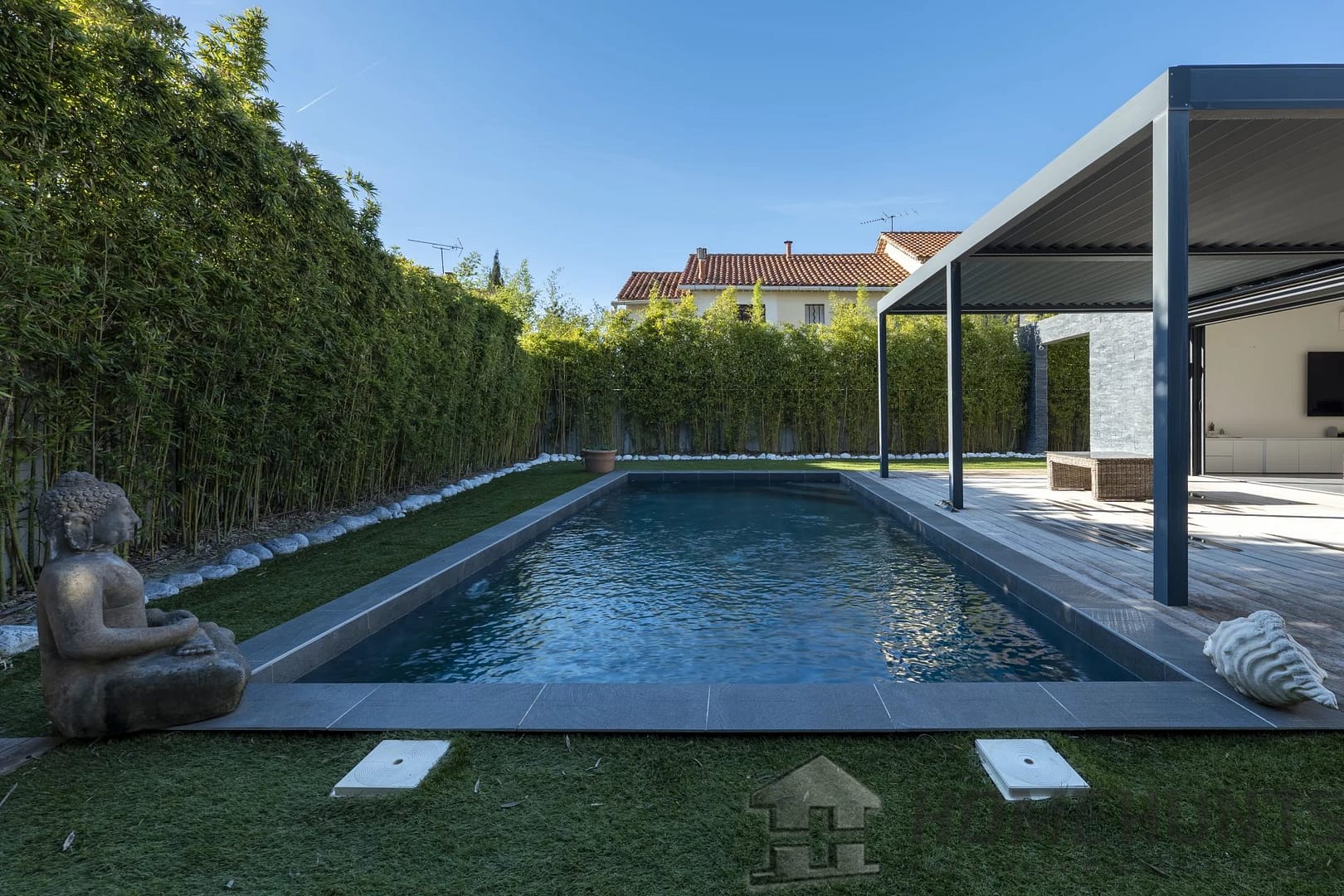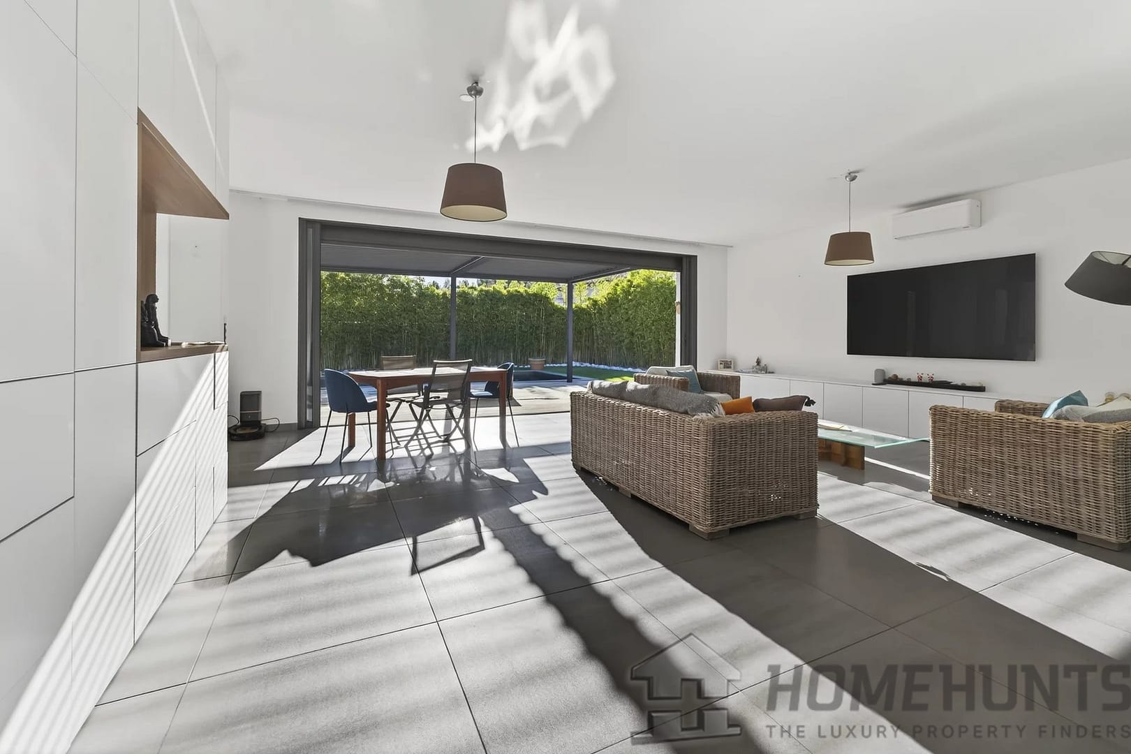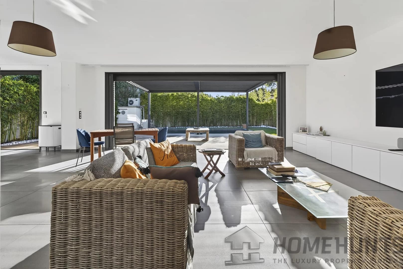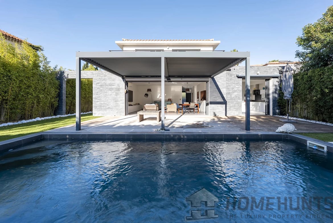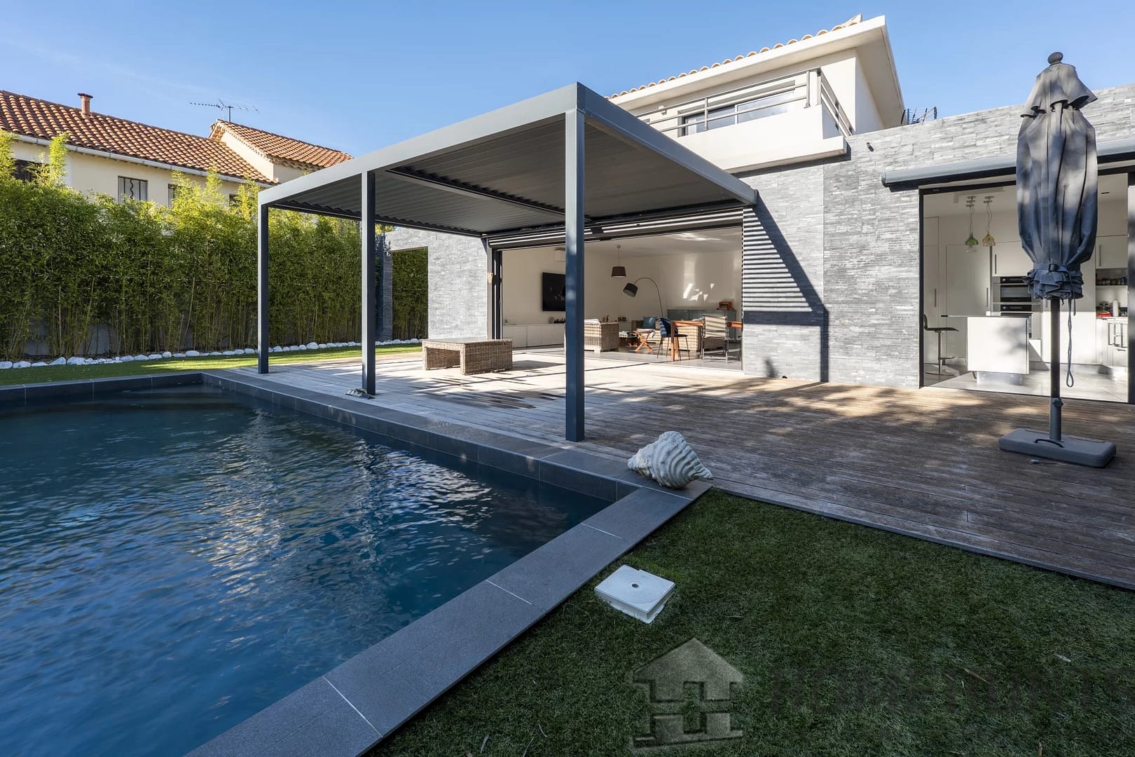 Designed for comfort and natural light, it features a spacious 50 m2 living area extended by a fully equipped open kitchen. Large sliding glass doors create a seamless flow between the interior and exterior, leading to the terrace, bioclimatic pergola, and heated swimming pool.
