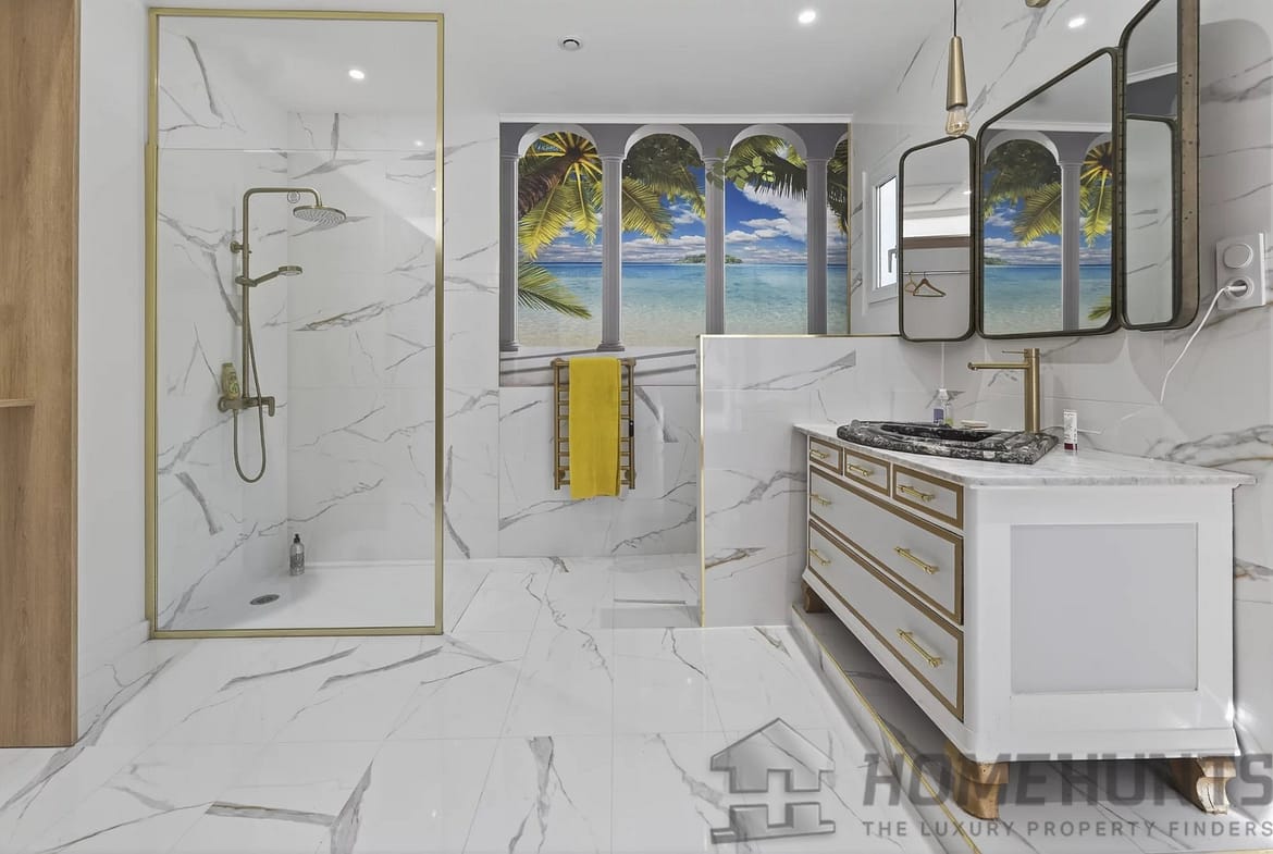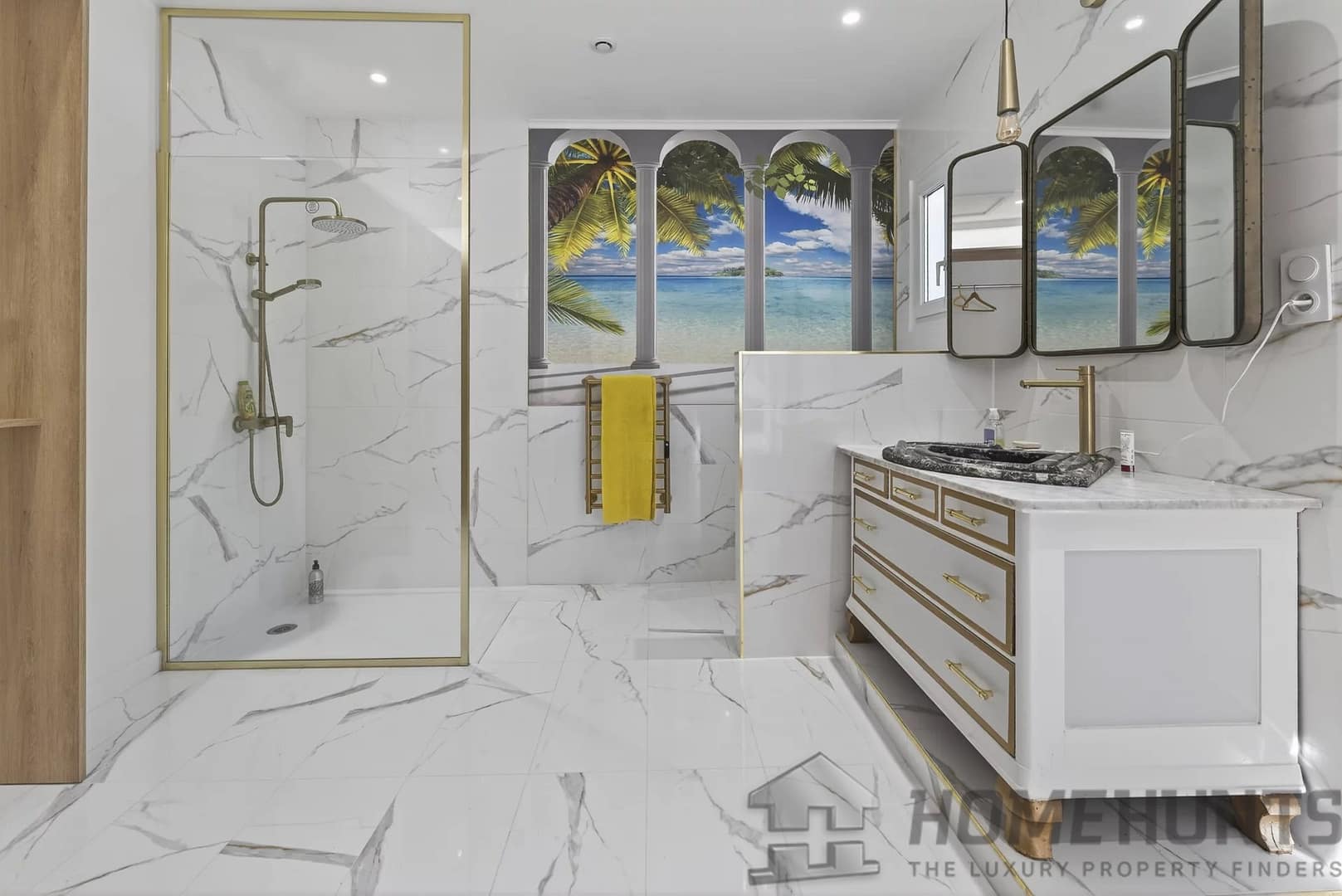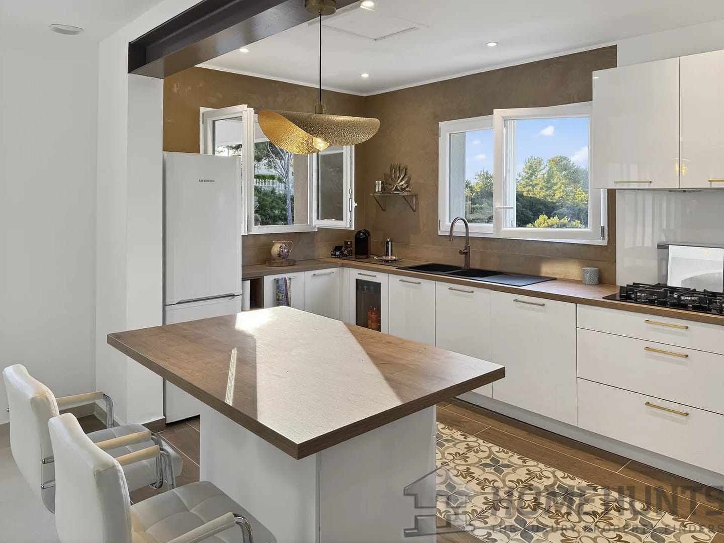 Sanary-sur-Mer, just 5 minutes’ walk from the beaches and 10 minutes from Bandol’s port, an elegant six-room family villa (183 m2), fully renovated, set on landscaped, fully enclosed grounds of 1,215 m2, offering high-quality features.