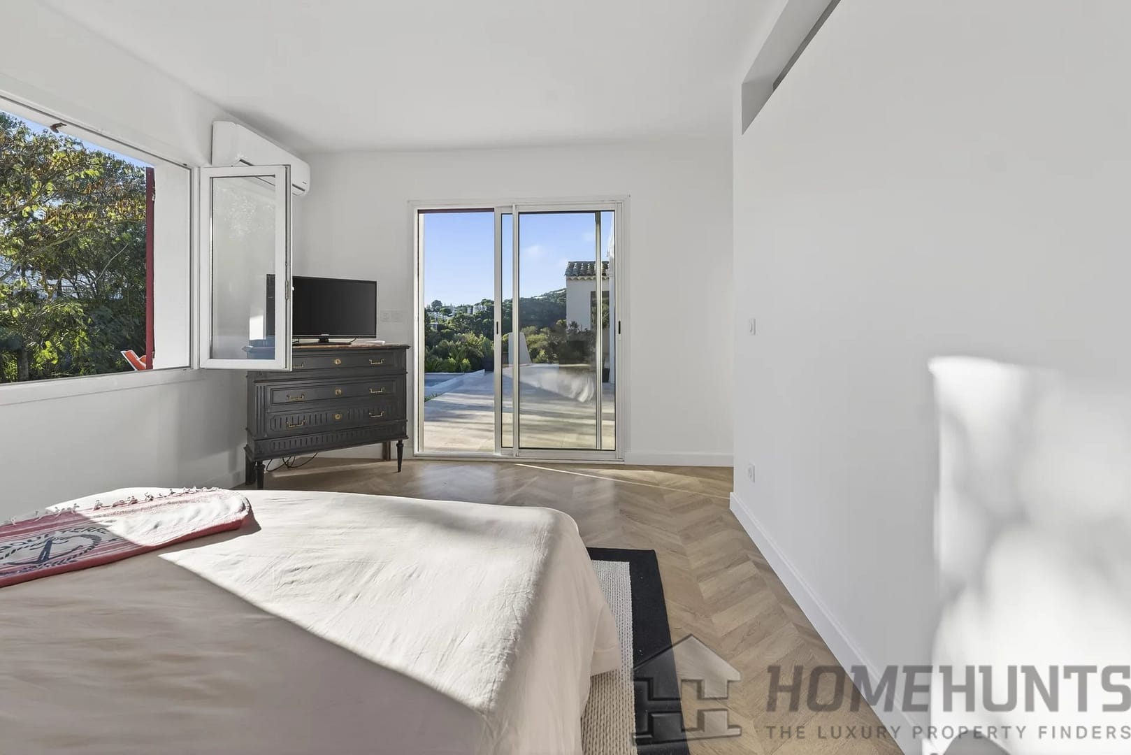 On the ground floor: entrance hall, TV lounge, a spacious living room extended by a dining area with six sliding bay windows opening onto the terraces and pool. The new, fully equipped kitchen includes an outdoor pass-through for summer dining. This level also offers a home office, a separate WC, and a primary suite with dressing room and shower room.