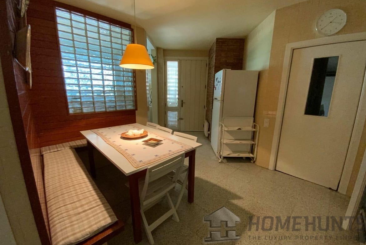 On the first floor we have the entrance and a large room with billiards, bar and sofa area. Ideal place to spend good times with family or friends. The first floor has a large living-dining room with fireplace, very sunny and with views to the garden and the sea. The vintage style kitchen is very spacious and has a laundry area.