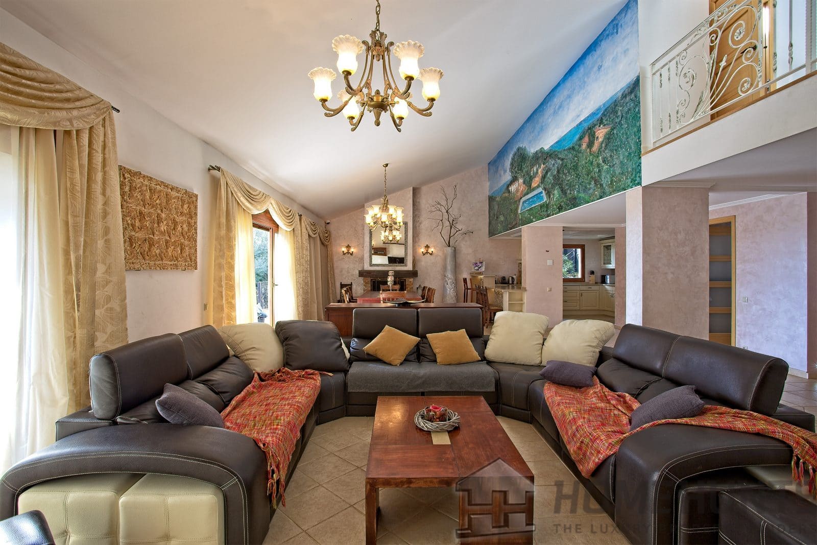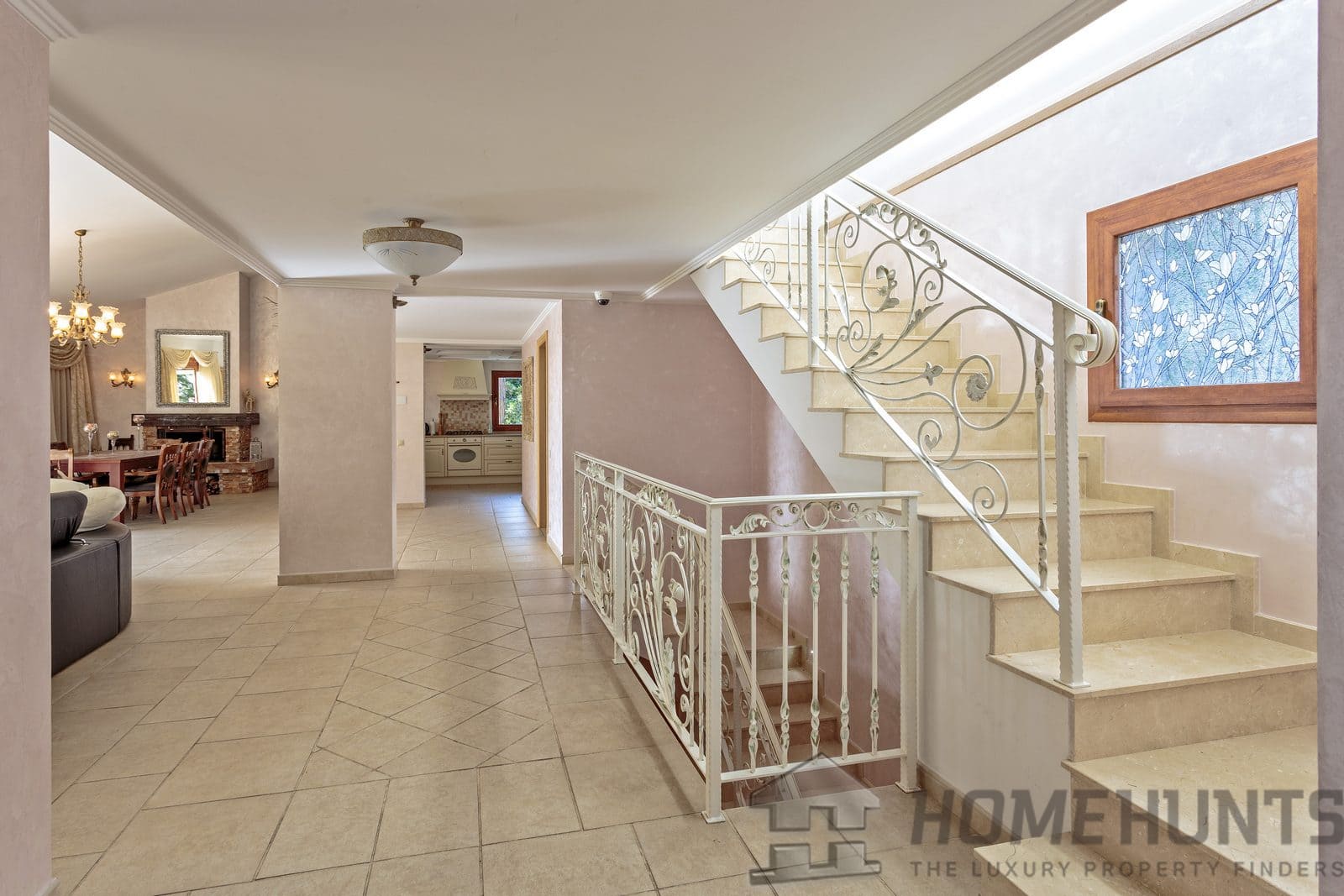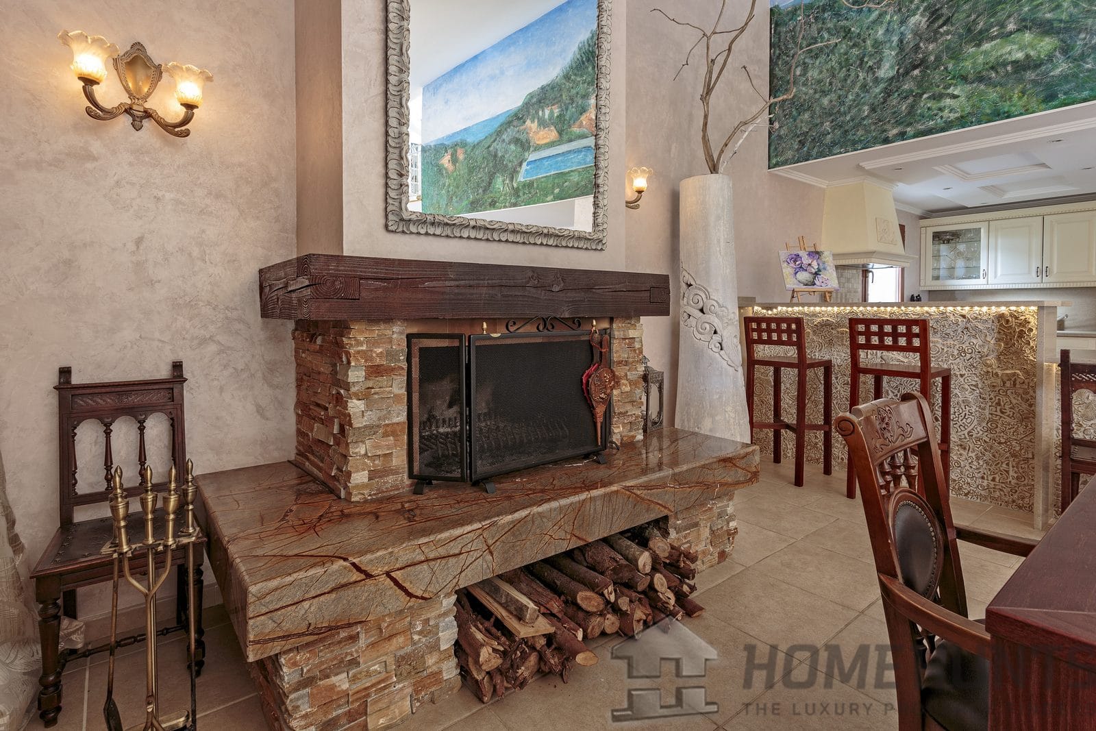 Main floor: a spacious living-dining room with a fireplace with access to a large terrace with fantastic sea views, a fully equipped open kitchen with utility room, a toilet room, a guest bedroom suite with a balcony and a bathroom, a laundry room. Heated floors on the whole floor and in all the bathrooms.