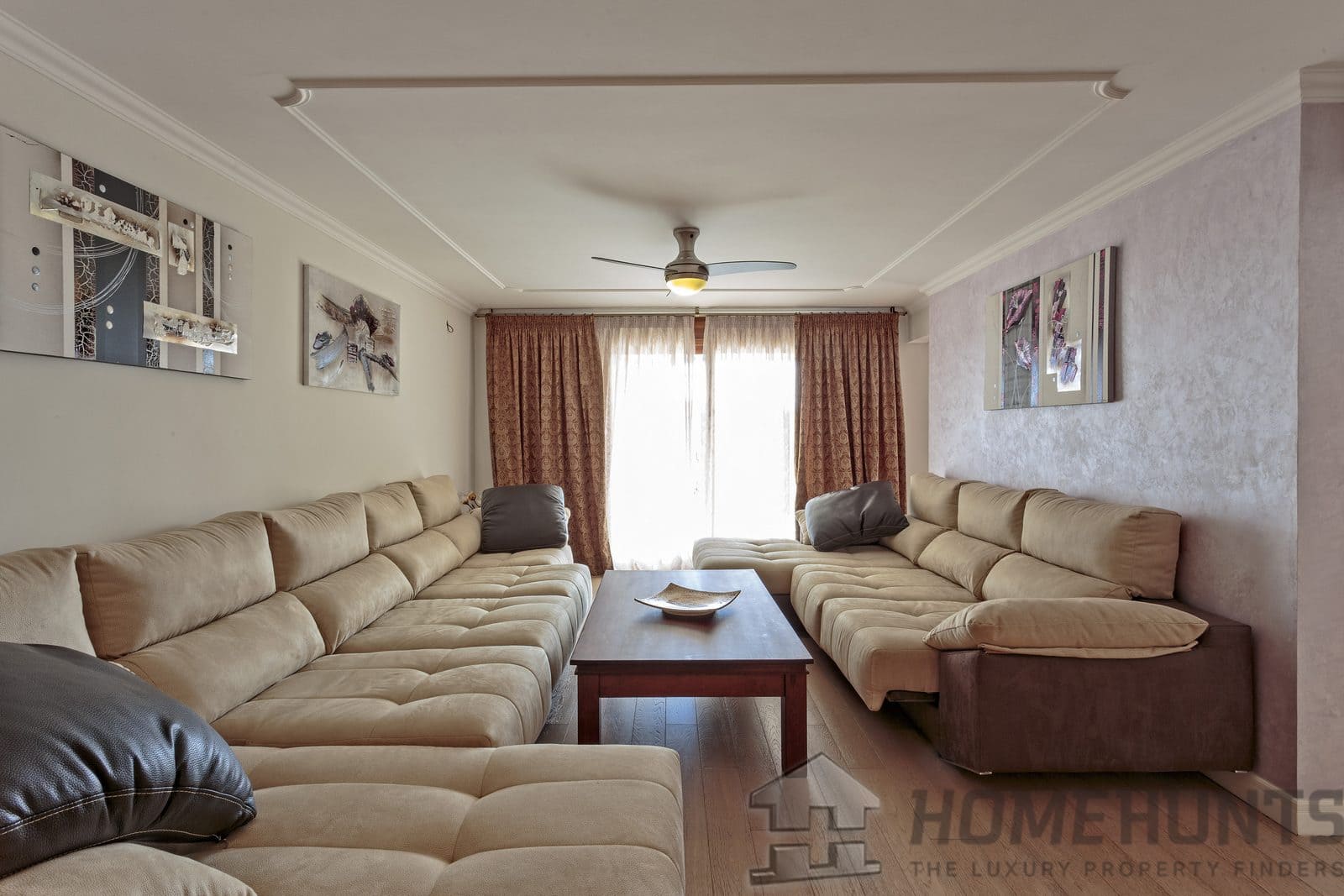 Lower floor (sleeping area): 3 bedrooms, 3 bathrooms, a second living room, a dressing room, a bedroom-suite with an electric fireplace and a bathroom (shower, sauna).