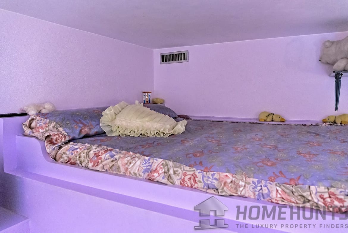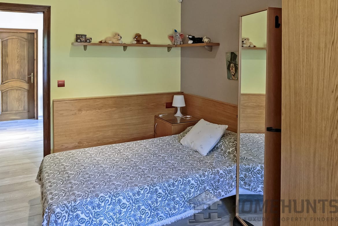 – large children’s bedroom (2 bunk beds – 4 beds) with a bathroom (toilet, bidet, shower) and cupboard under the stairs;