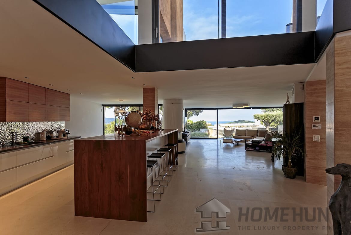 This modern, spacious villa with sea views is located on a hilltop in the prestigious Las Baterias district of Sant Feliu de Guixols, on the Costa Brava. The villa was built according to a stunning architectural design that provides a feeling of lightness and space, using natural light and creating maximum comfort.