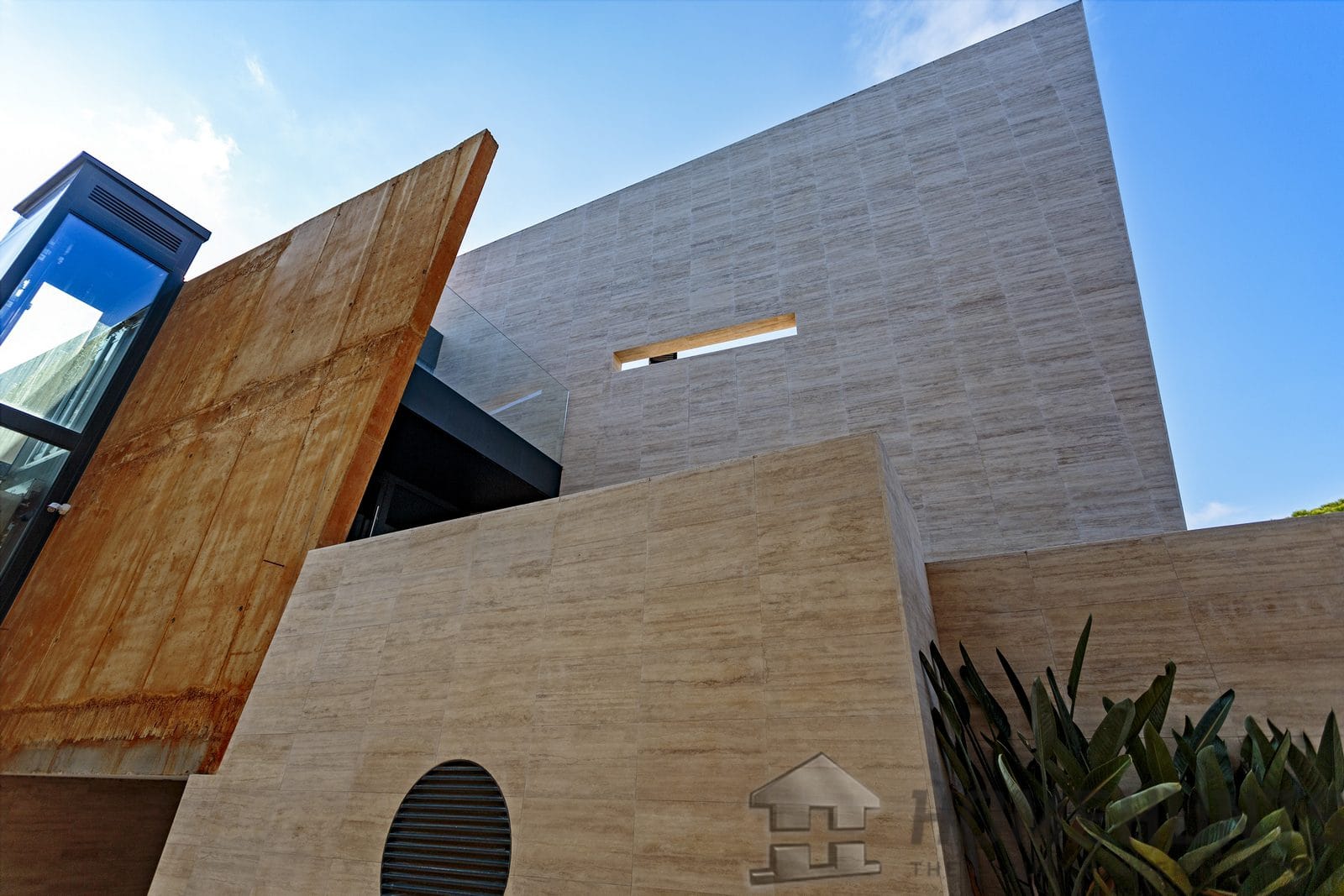 The house has an elevator connecting all three levels.
