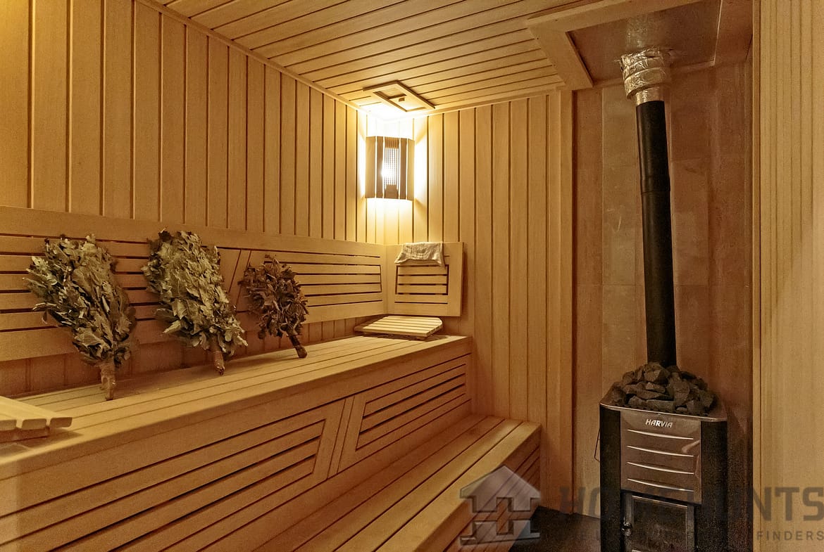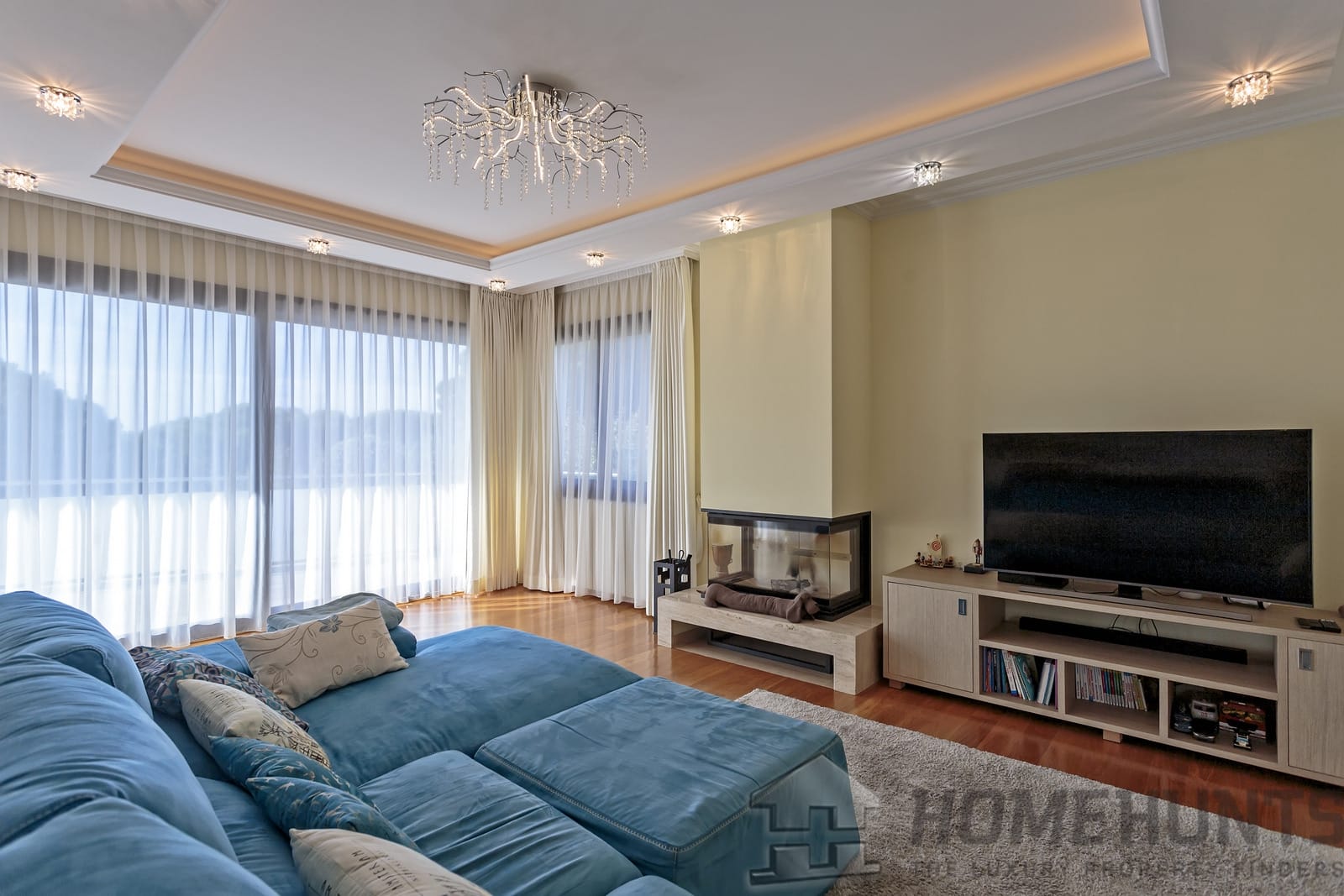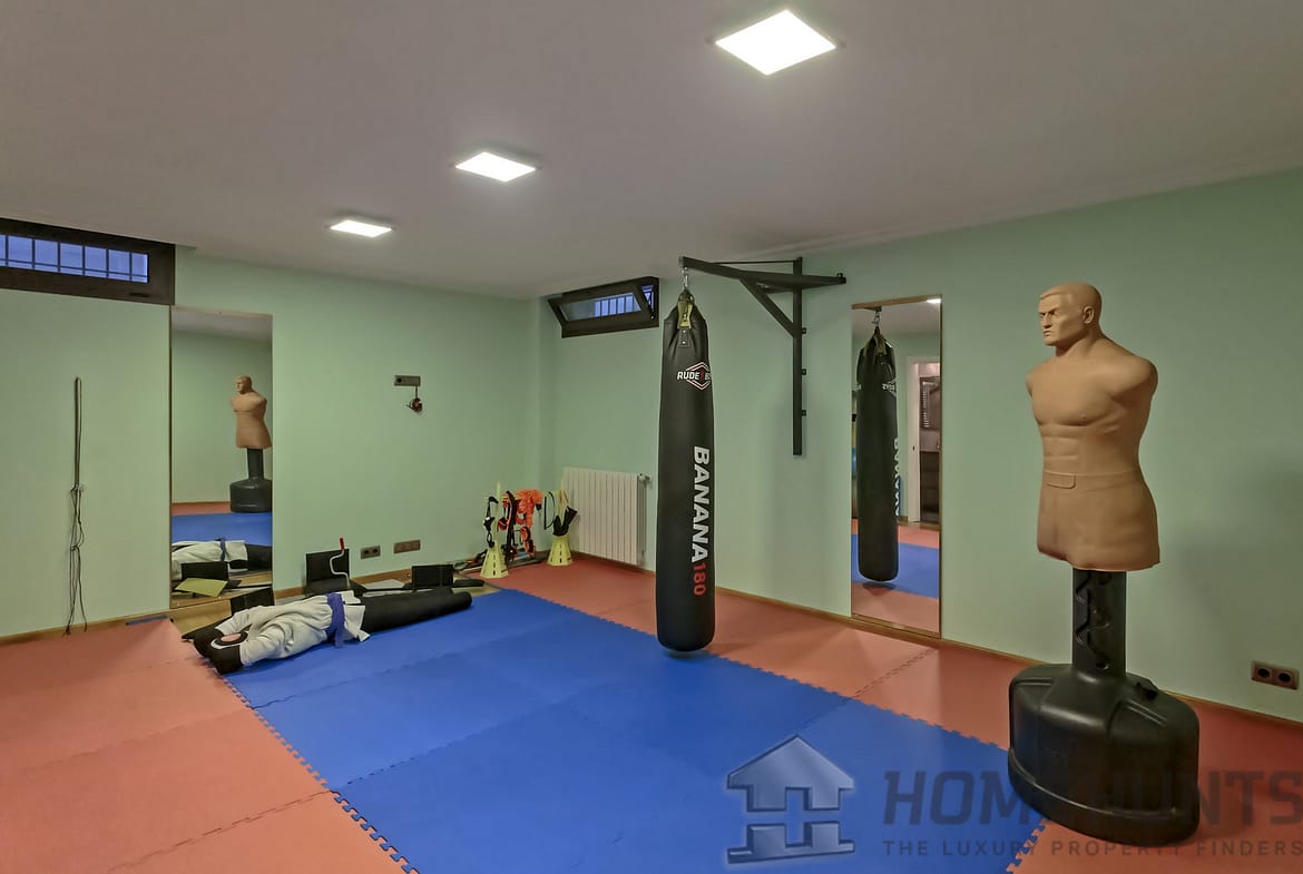 In the basement there is a gym with bath, sauna and cold shower, boiler room and garage for 4 cars.