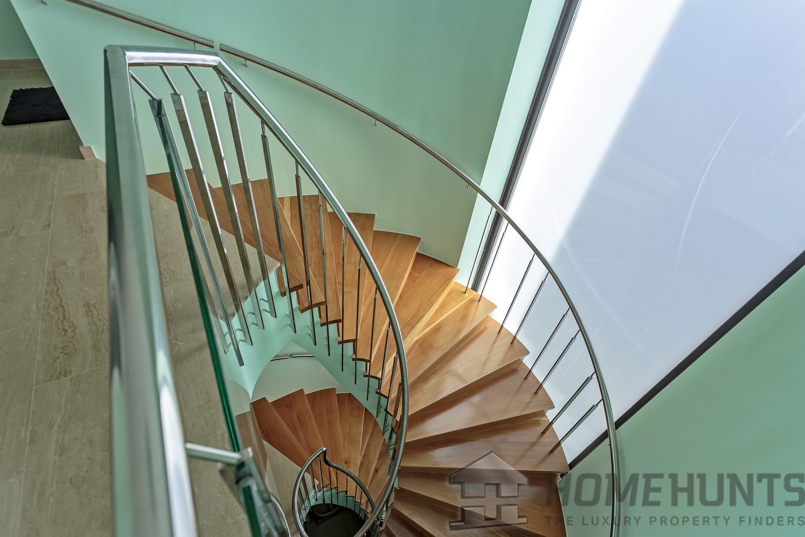 A spiral staircase leads to the solarium with wonderful views of the sea, pine trees and the city.
