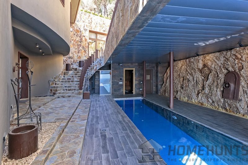 – Two pools; one of them, 20 meters long, is heated and has a protective sliding roof. Shower, sauna, toilet.