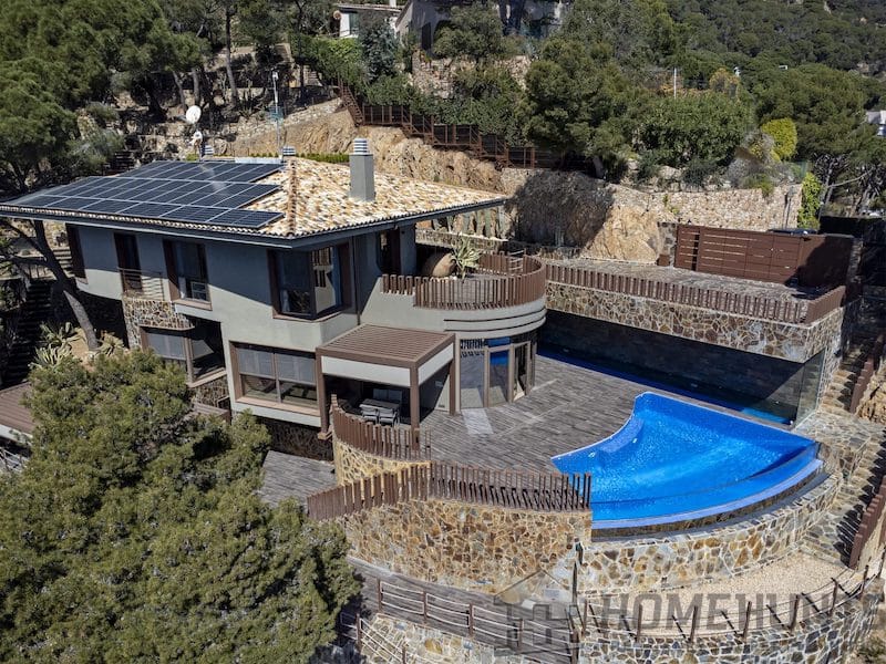 Stunning villa with amazing panoramic sea views, located on a rocky slope in the prestigious urbanization of Punta Brava, Sant Feliu de Guixols, Costa Brava, Spain. The exterior of the house is made in a traditional Mediterranean style, while inside you will find the most modern finishes and advanced technological solutions thought out to the smallest detail.