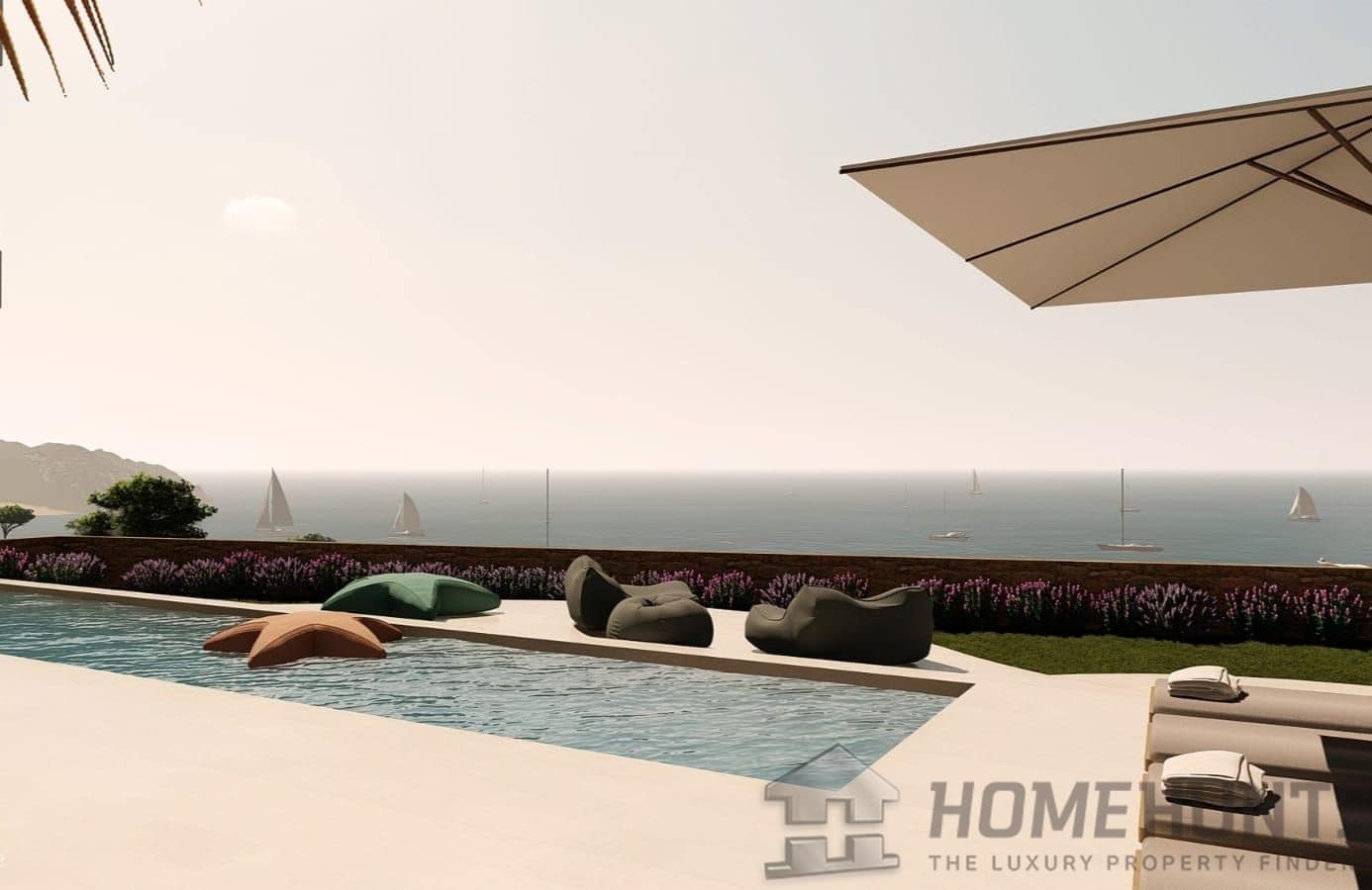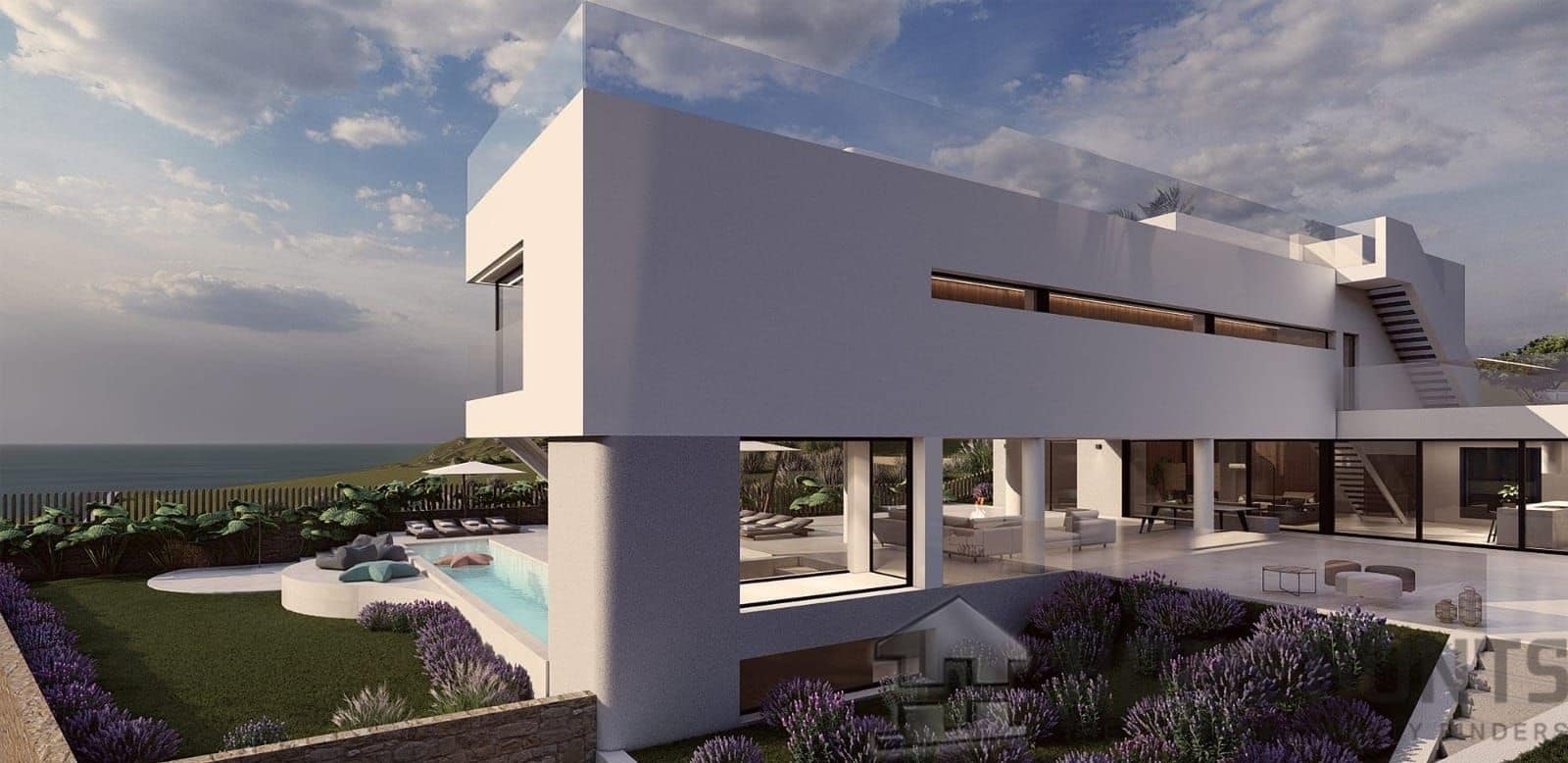 The exterior of the villa is equally impressive, with an exquisitely landscaped garden surrounding the property, offering multiple areas for outdoor relaxation and recreation. The jewel of the exterior is a stunning infinity pool that seems to merge with the sea horizon, accompanied by a solarium area to enjoy the Mediterranean climate. Spacious terraces with sitting areas are perfect for enjoying the panoramic views and sunsets over the sea, making every moment a memorable experience.