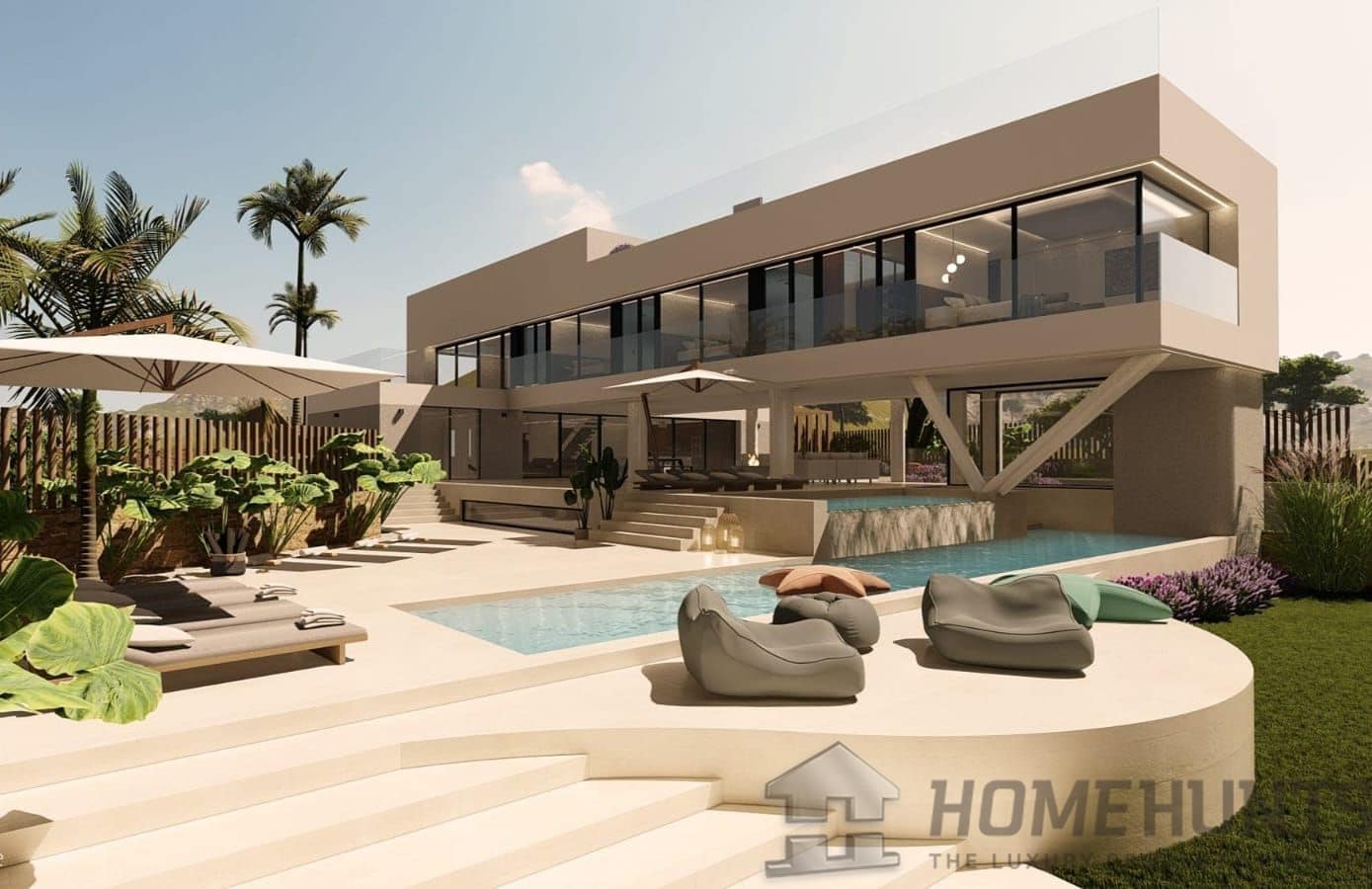 The villa features five luxurious bedrooms, each with its own en-suite bathroom, designed for maximum comfort and privacy, all with spectacular views and direct access to the outdoor areas. The six bathrooms, elegantly decorated with top quality materials and designer fixtures, provide an environment of relaxation and luxury.