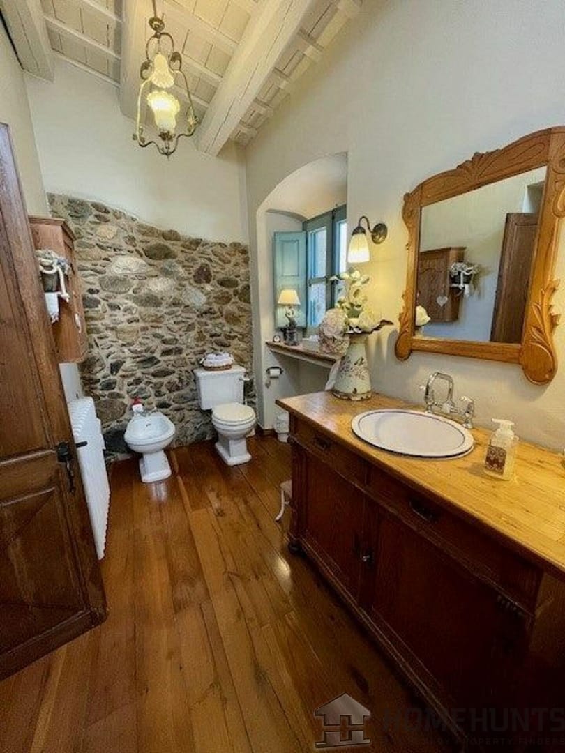 The farmhouse, delicately reconstructed and decorated, has more than 250 m2 built in which, on the ground floor, we find the kitchen, dining-living area with fireplace, which gives access to the wonderful covered porch. Desk area and a double bedroom. Full bathroom.