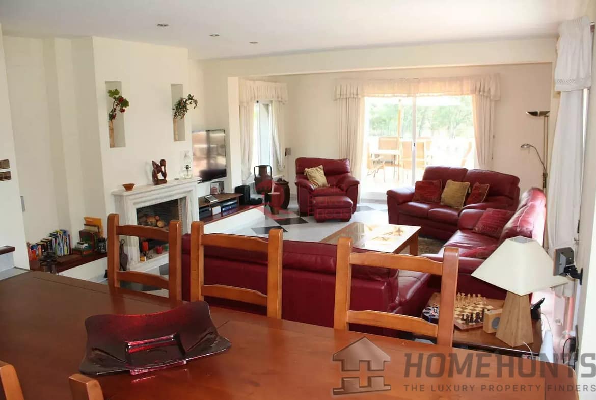 The garden features a very large pool (12 x 6m) and a covered terrace for outdoor dining, with additional terraces accessible from different rooms in the house. The garden has grass ideal for children to play ball games.