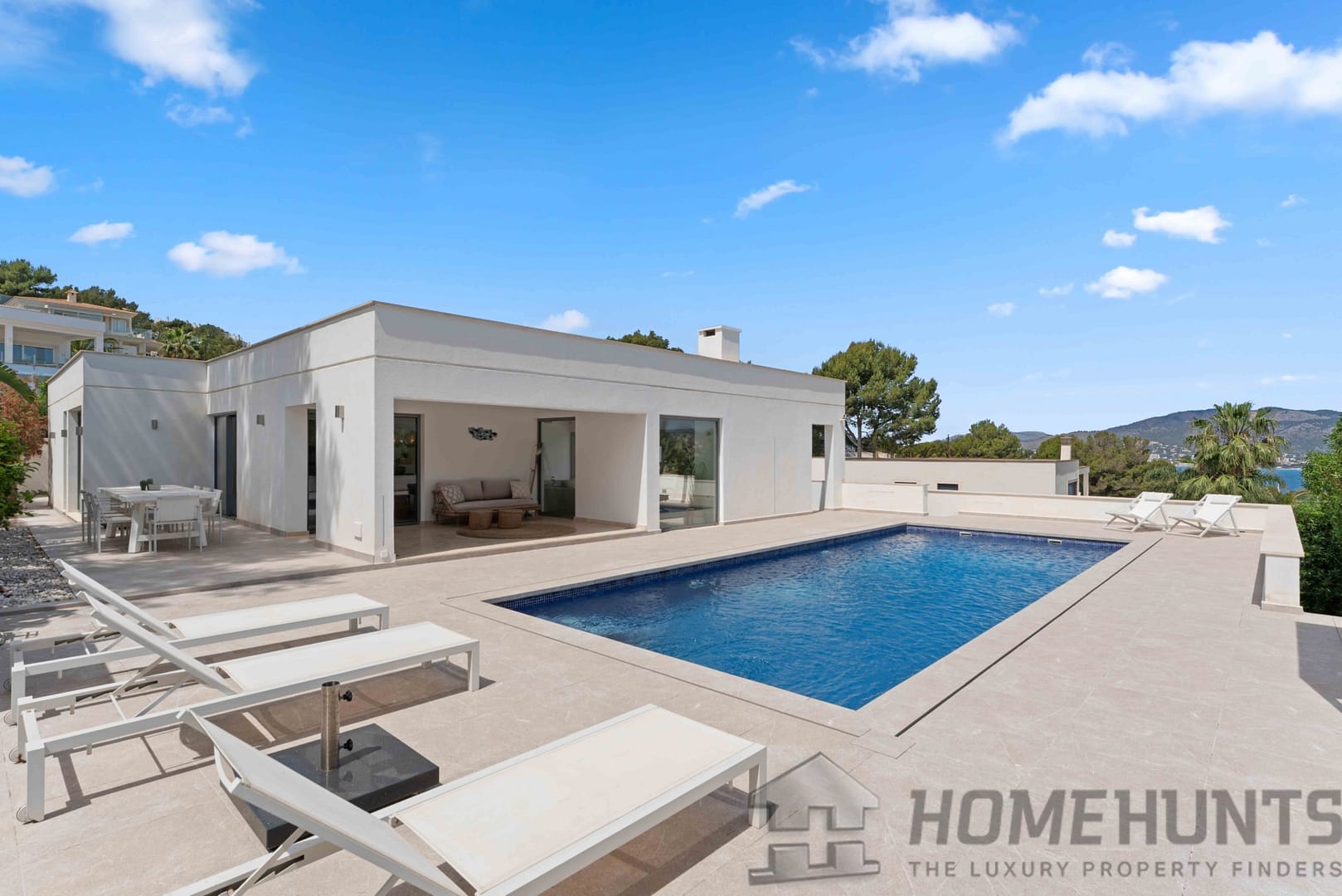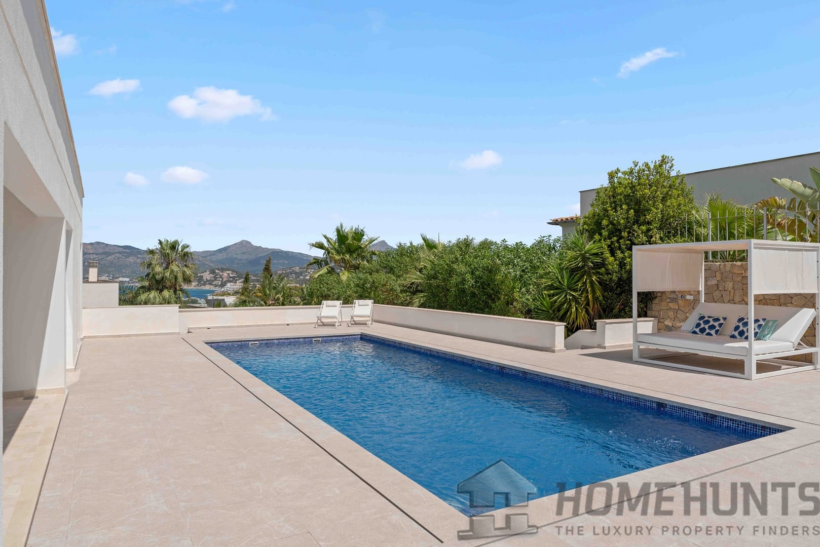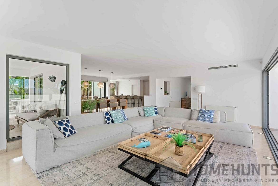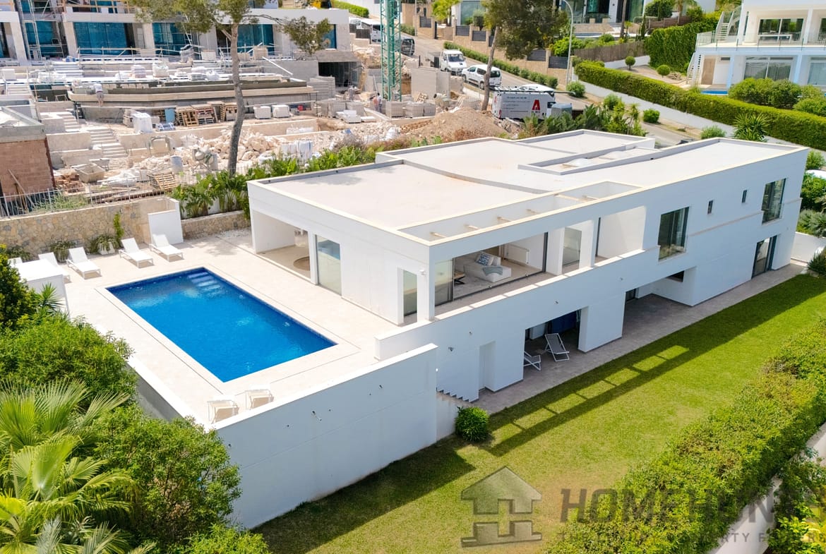 It is situated on a flat plot in a quiet and exclusive villa location. A spacious sandy beach, two marinas and four renowned golf courses as well as the center of Santa Ponsa can be reached in just a few minutes. The island’s capital Palma and the airport can be easily reached in around 20 and 30 minutes by car respectively.