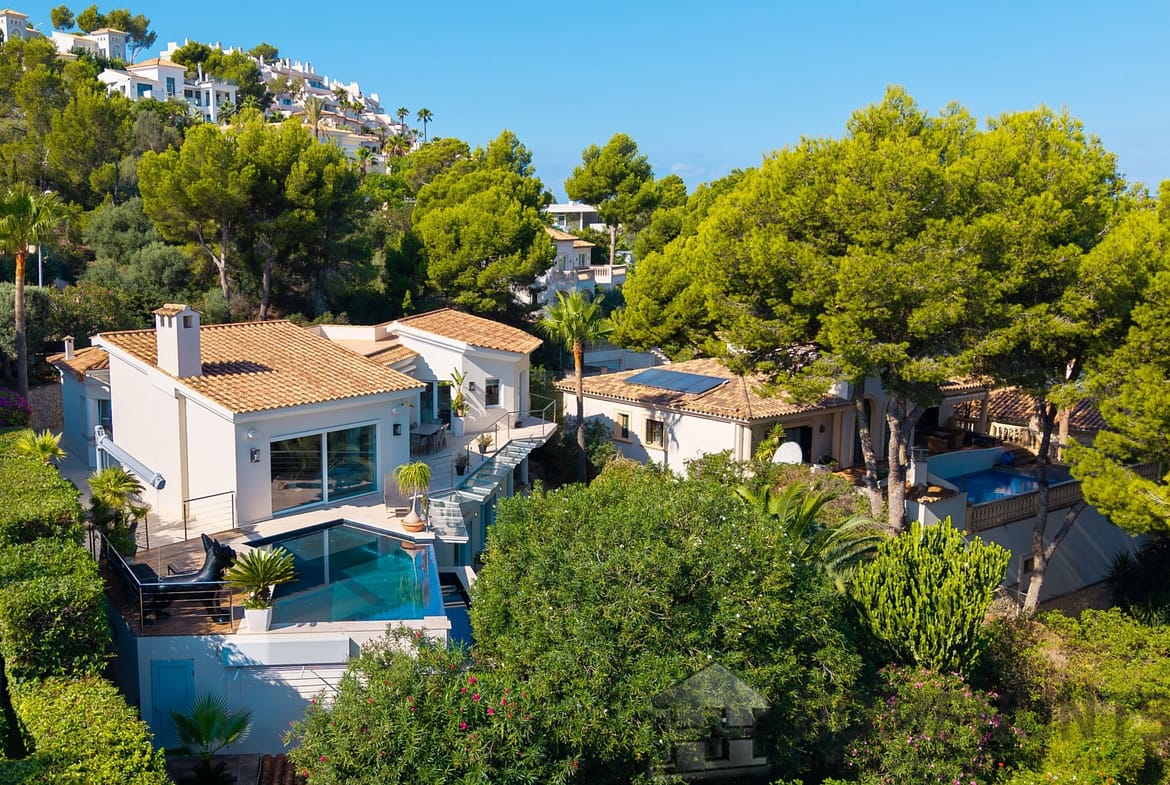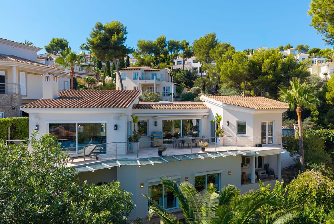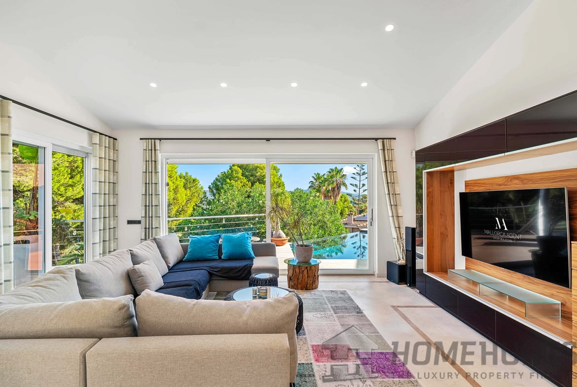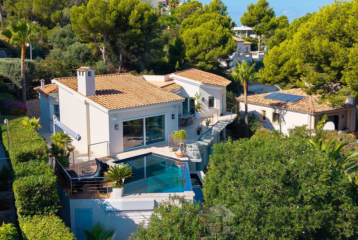 This modern villa combines timeless architecture with exclusive living comfort and a privileged location in Santa Ponsa, close to the Port Adriano marina and several golf courses.
