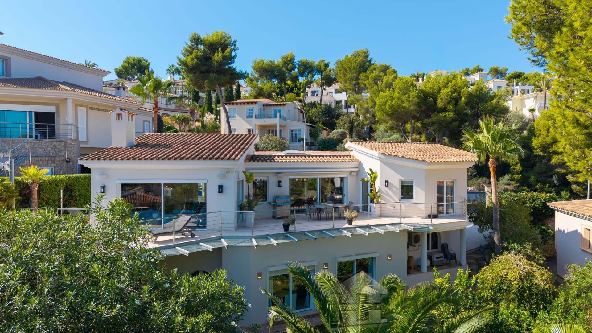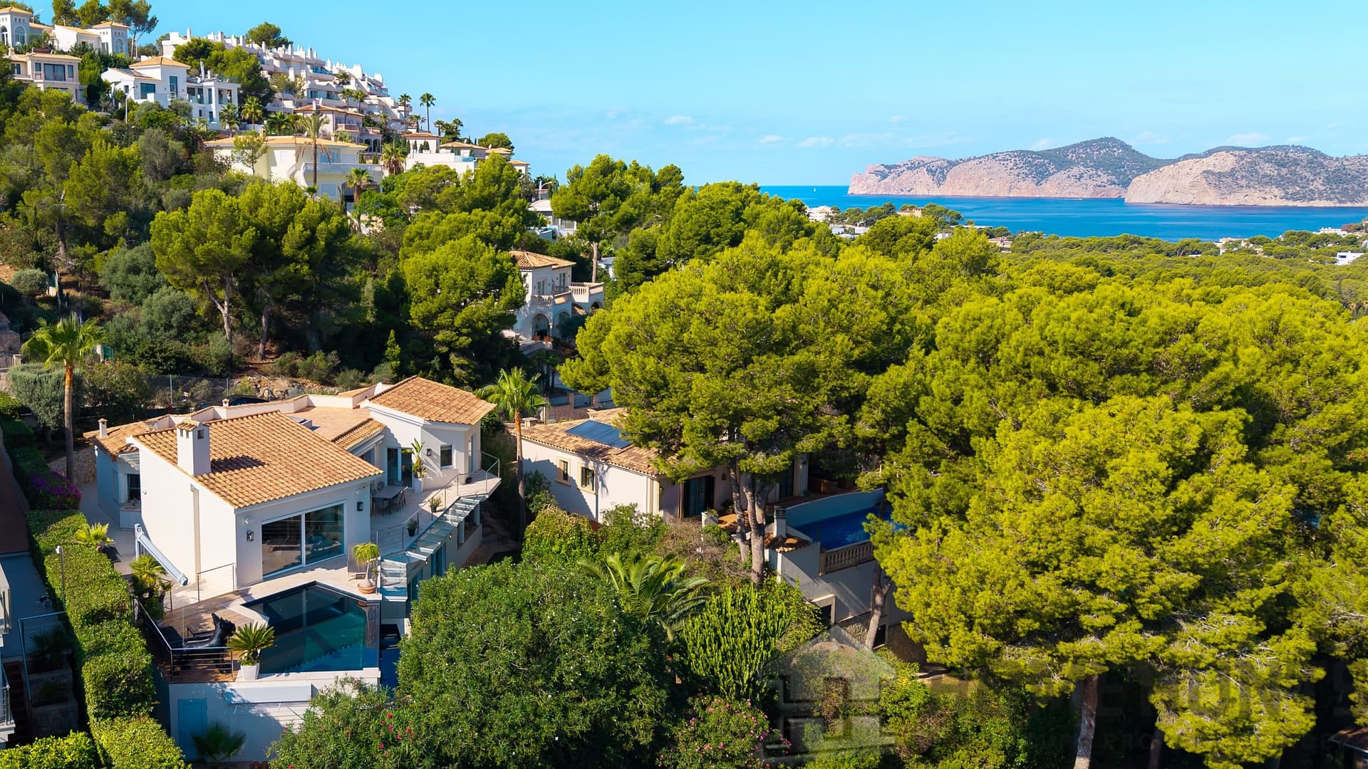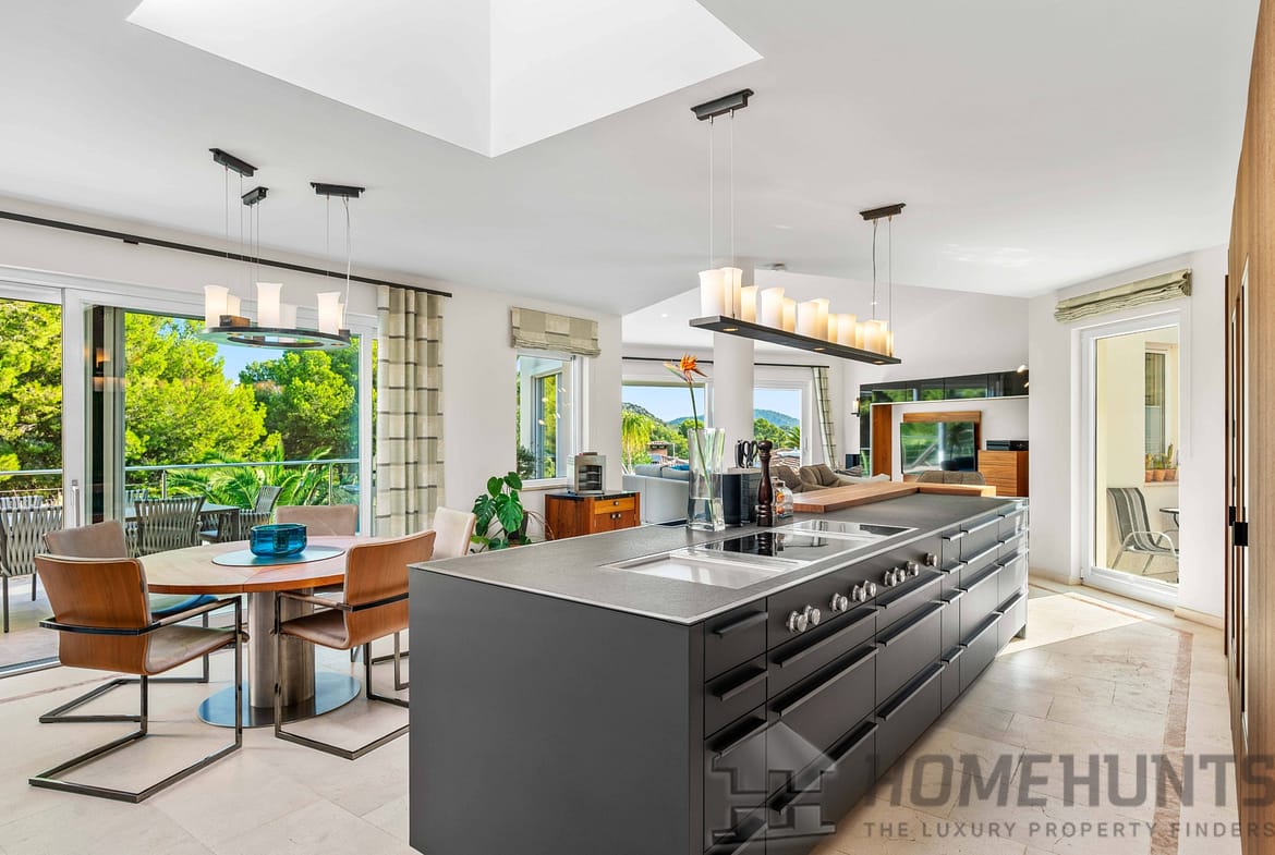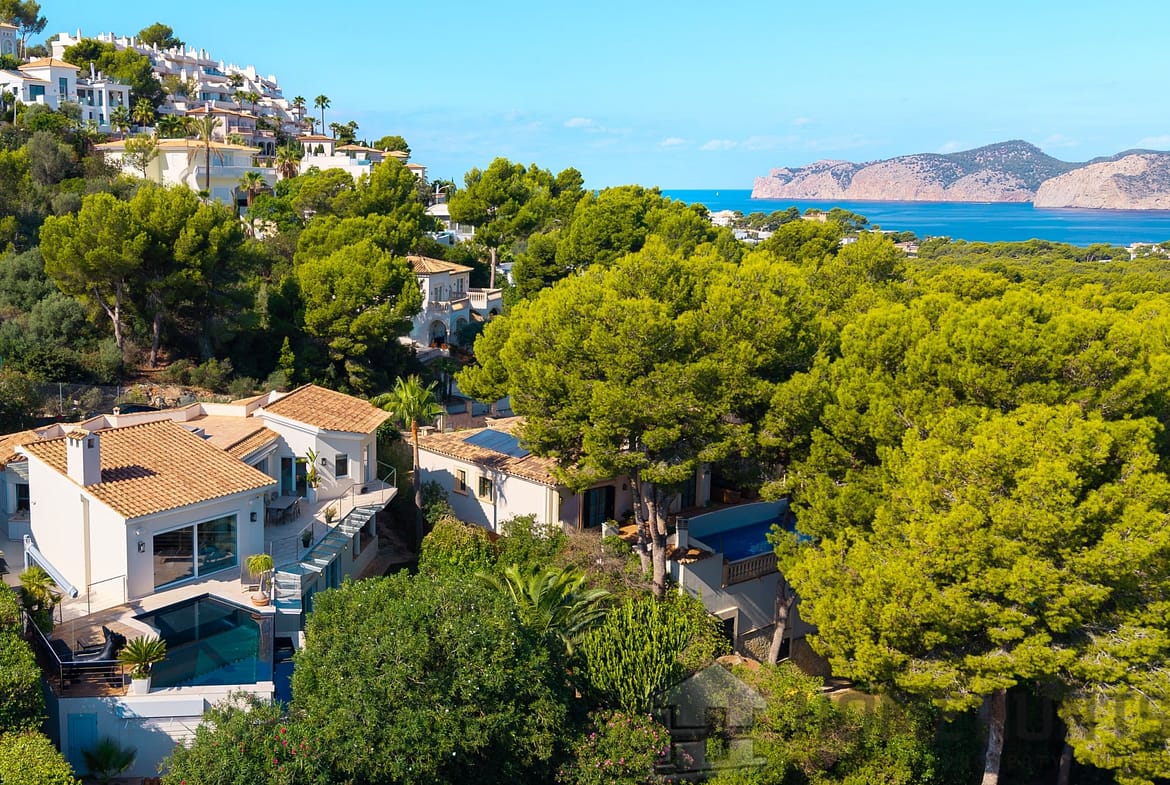 This modern villa combines timeless architecture with exclusive living comfort and a privileged location in Santa Ponsa, close to the Port Adriano marina and several golf courses.
