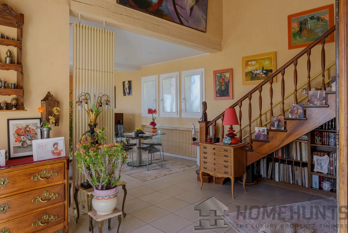 The grounds of 1965 m2, planted with trees, include a swimming pool and a relaxation area from which to take in the exceptional views, as well as direct access to the hill for pleasant walks close to the house.