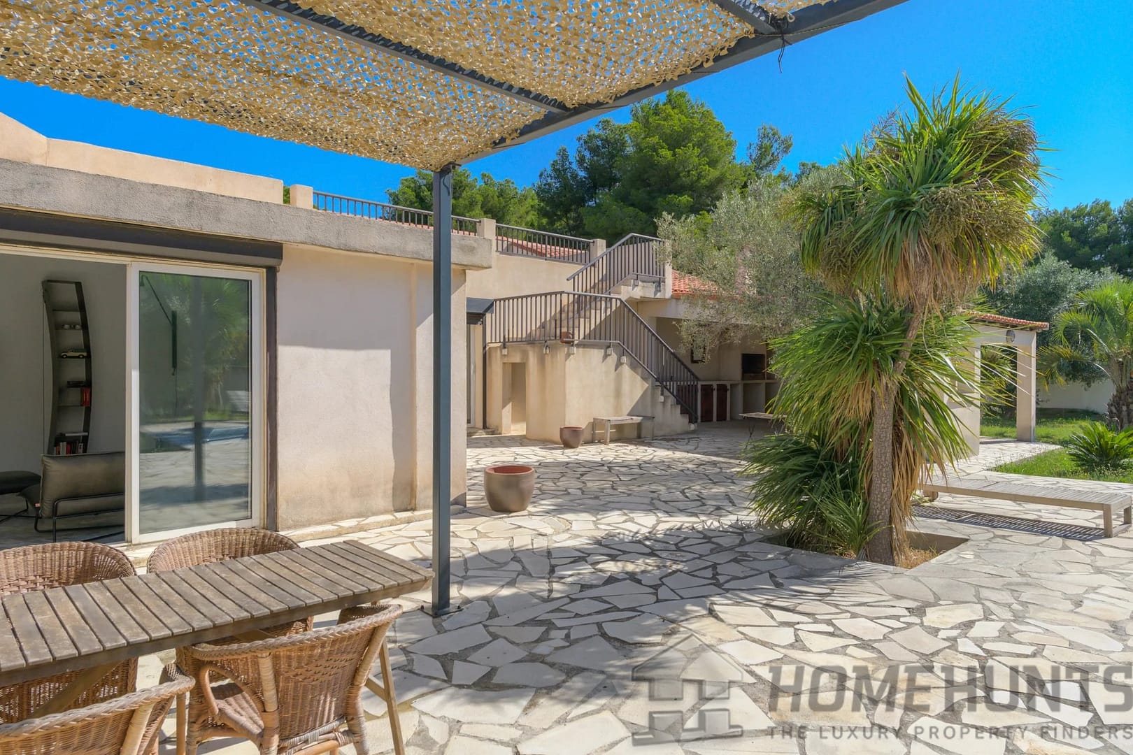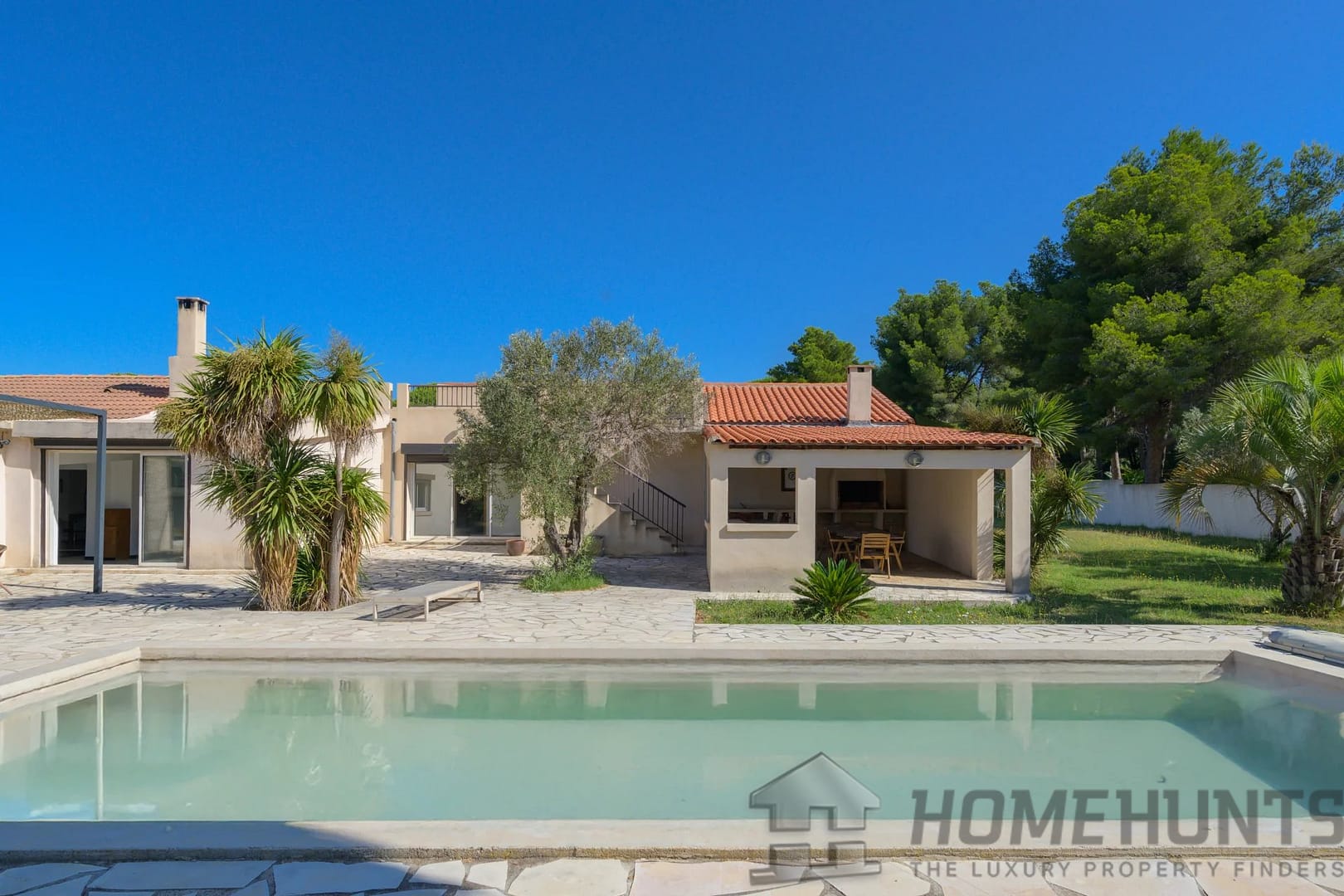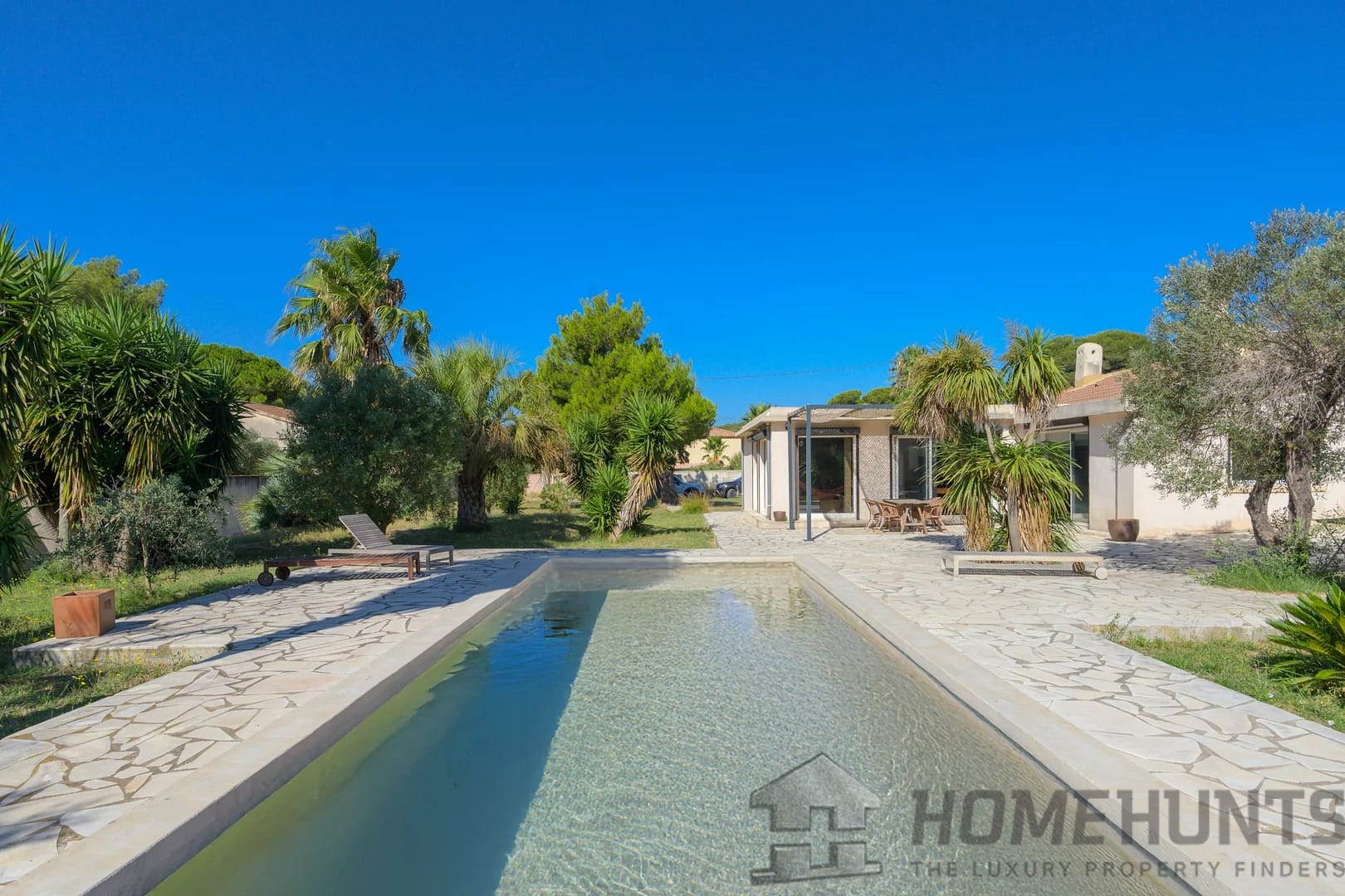Set on a flat 6,500 m2 (1.6-acre) plot, the garden offers numerous possibilities. On the south side, in front of the villa, you’ll find a beautifully landscaped area with a 10.5 x 4 meter chlorine pool.