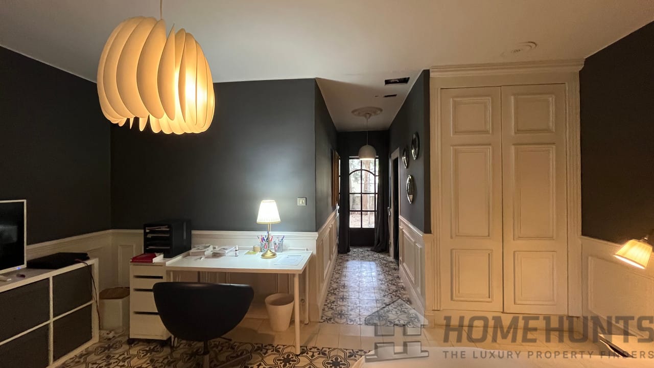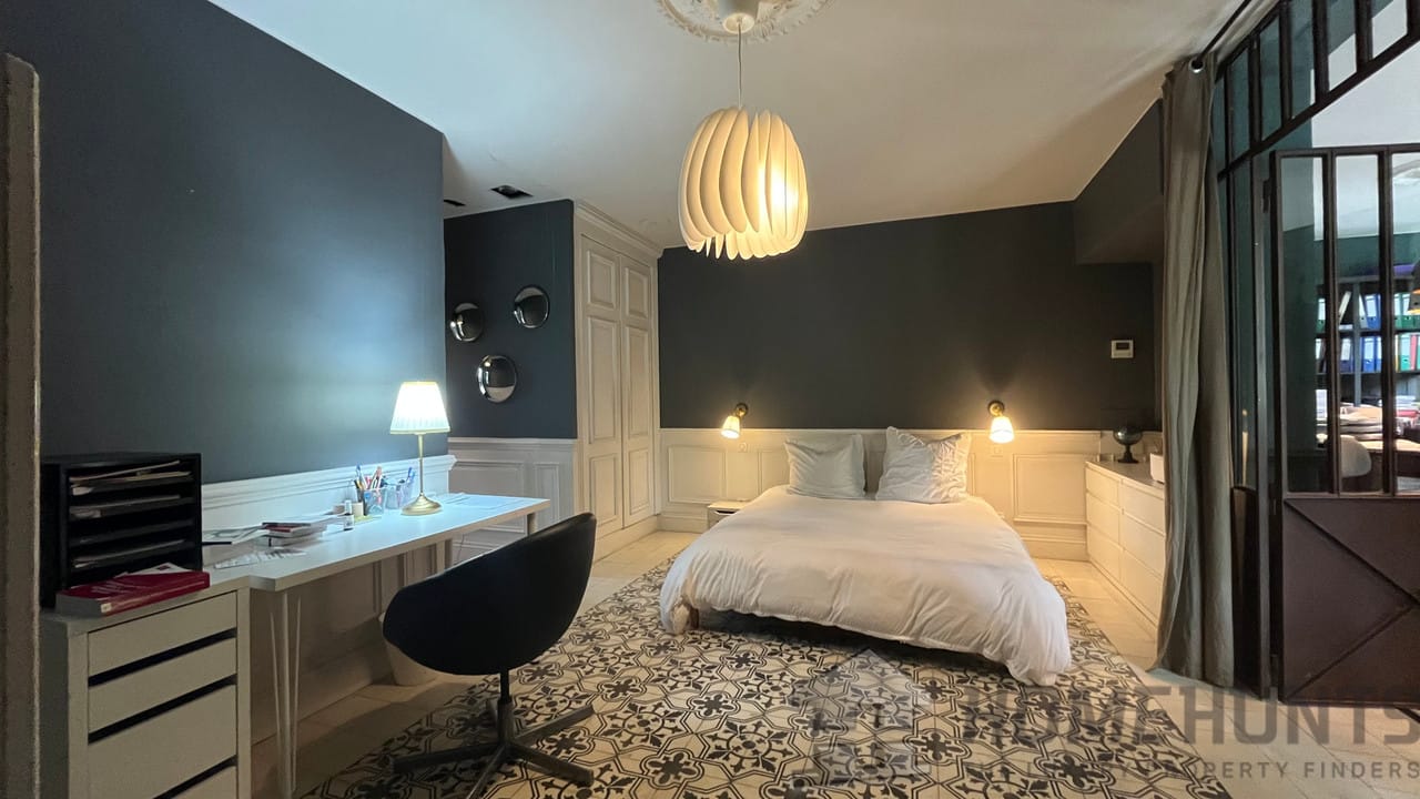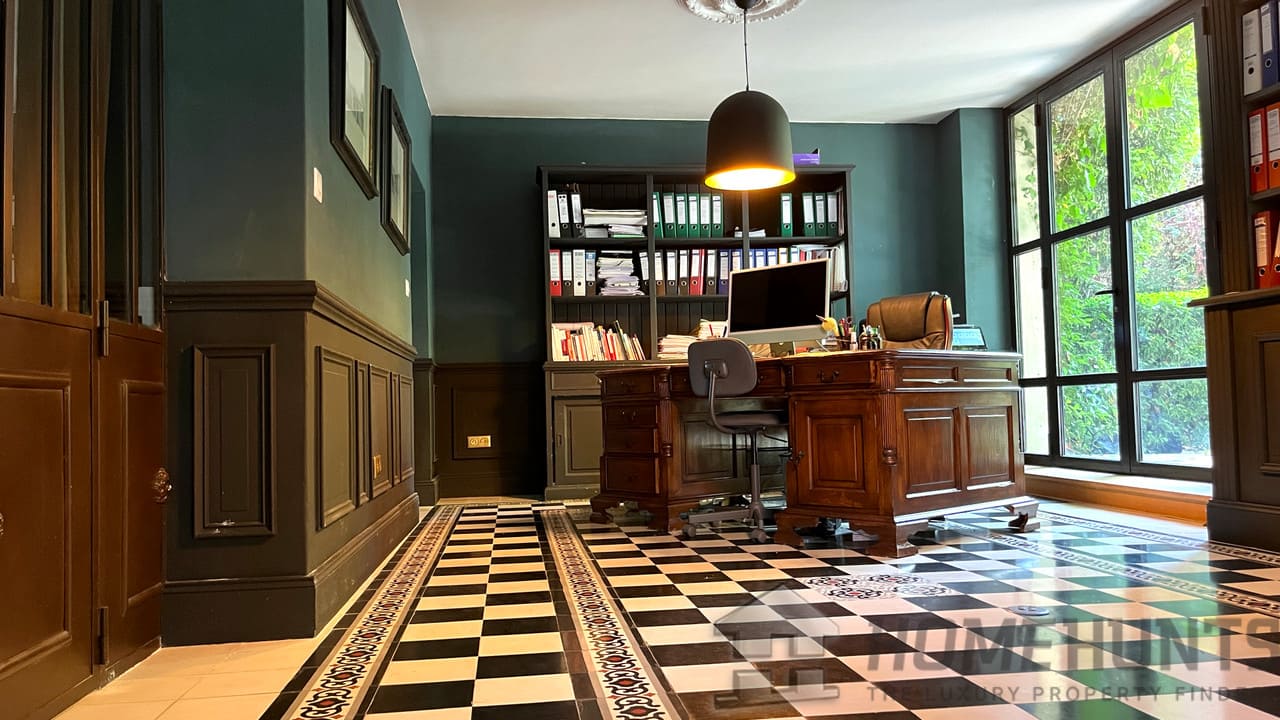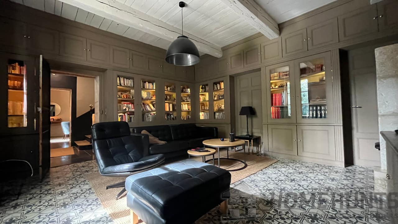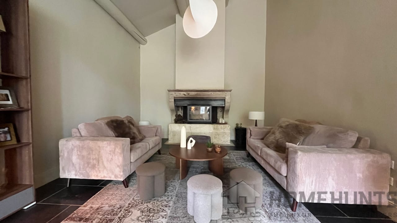 This charming property has been carefully maintained and recently renovated with high-quality materials. It is spread over two floors. The ground floor comprises a large living room with fireplace, a fitted kitchen with adjoining dining room and a TV lounge. The right wing has a bedroom with en-suite shower room, a beautiful office space opening onto a terrace, and an artist’s studio.