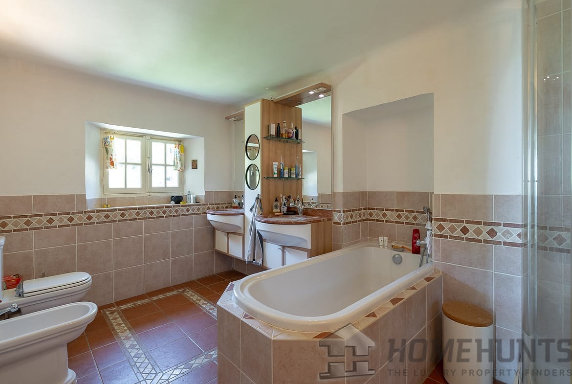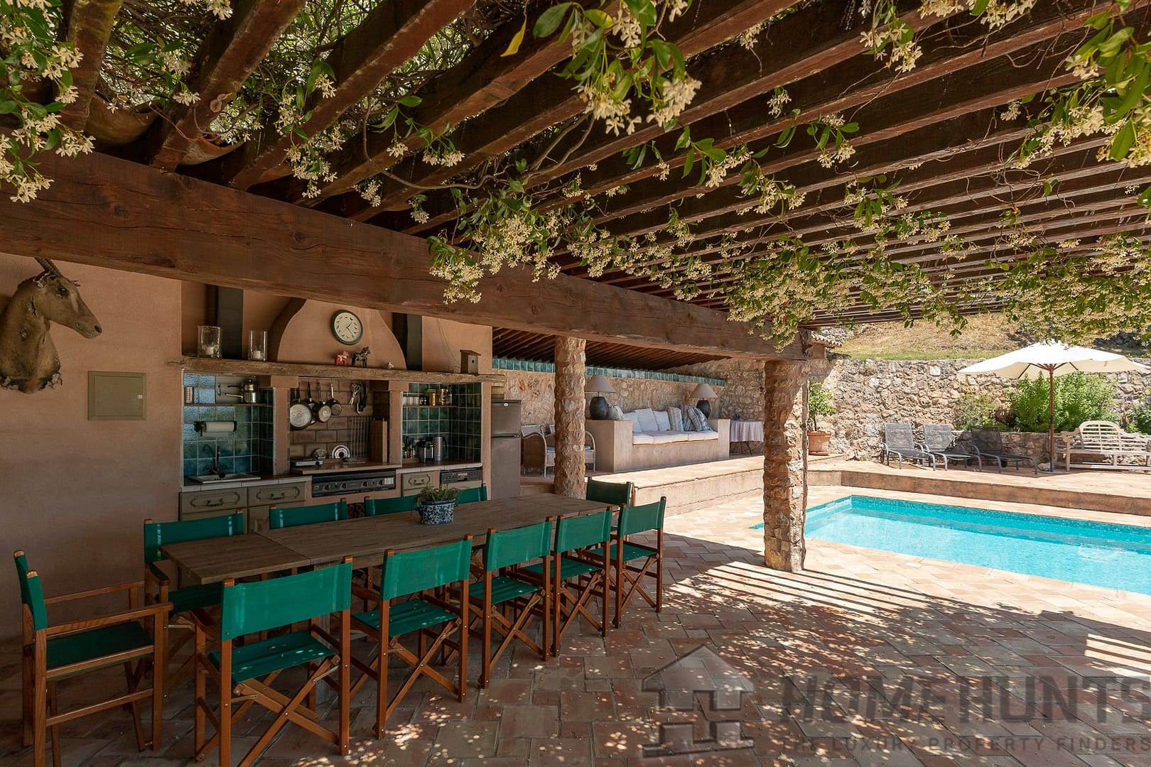 Outside you can find a lovely garden with many trees, a beautiful and sunny swimming pool, a covered terrace with summer kitchen. Shower room and toilet. Technical room. Double garage