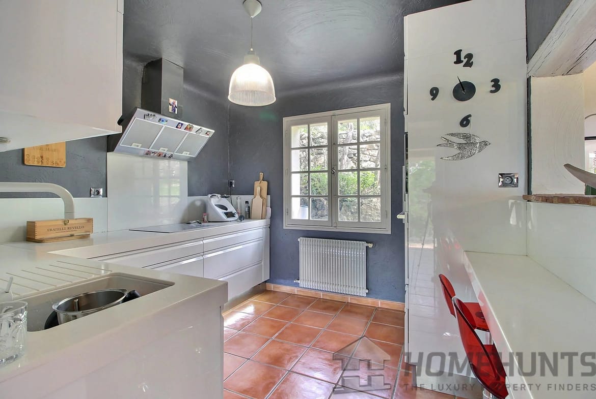 The proveníçal garden of 1875m2 benefits from a vast terrace and swimming pool, with summer kitchen with bbq and pizza oven.