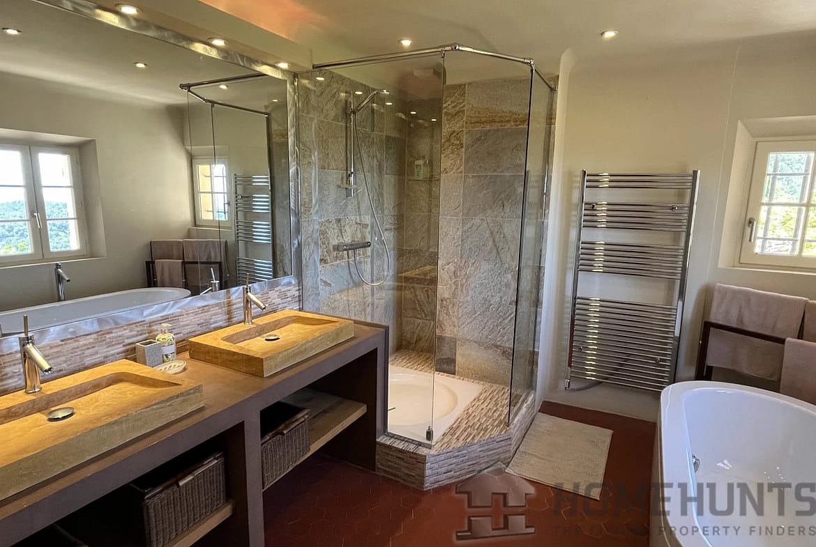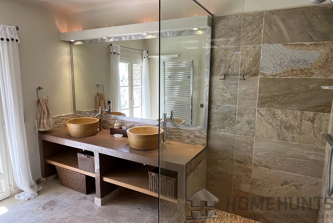 On a 22,000 m2 of grounds with olive trees and century-old trees, this exceptional luxurious property offers you 251 m2 of living space, with 5 bedrooms and 5 bathrooms. Living room with fireplace, high-end kitchen and very nice amenities.
