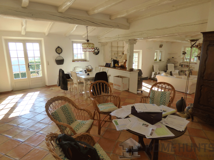 Inside this charming home offers an entrance hall, separate toilet, living room with fireplace and dining room (all about 75m2), opening onto a terrace, fitted kitchen leading to a covered terrace.