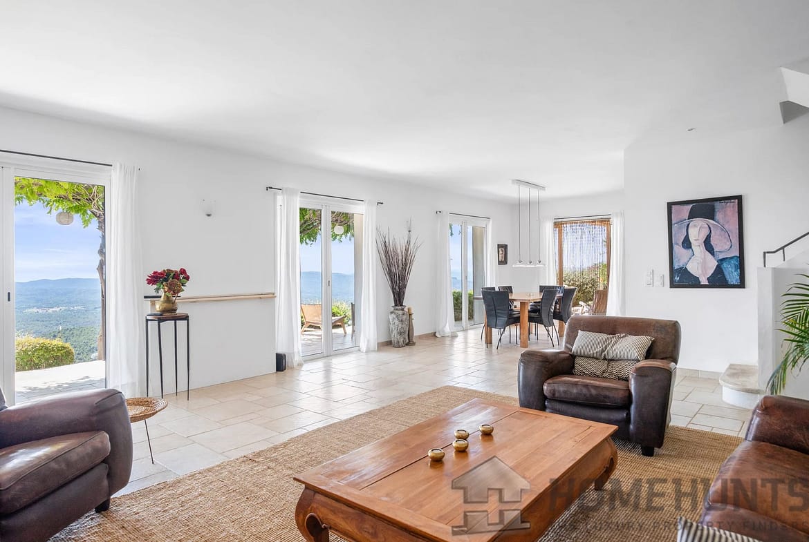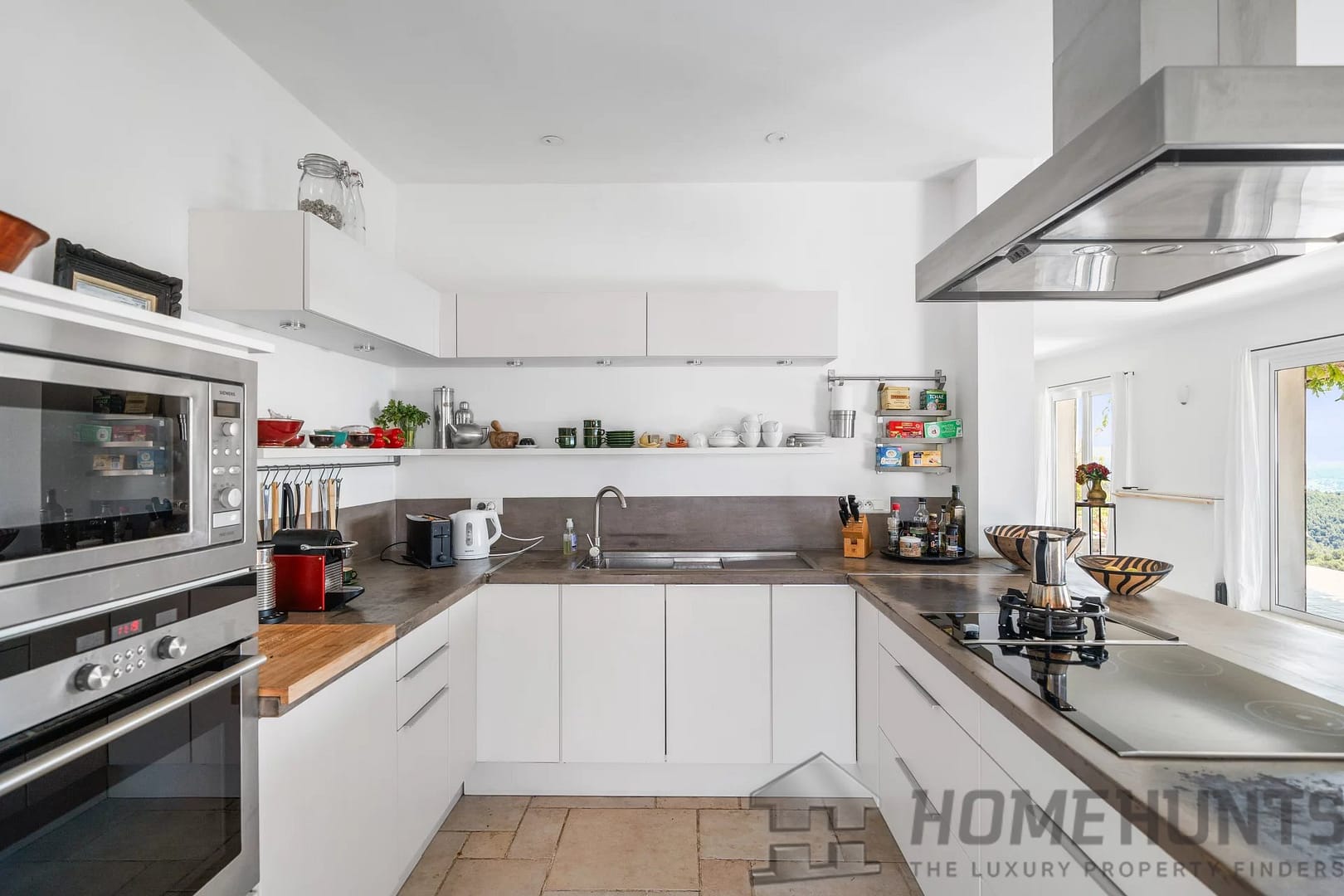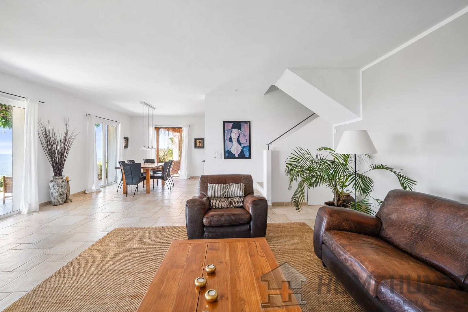 Set in a commanding position, this exquisite contemporary residence boasts spectacular panoramic views extending all the way to the sea. Flooded with natural light, it offers a grand living room opening onto an expansive covered terrace showcasing breathtaking vistas, along with a beautifully appointed kitchen with dining area and a second covered terrace, ideal for elegant summer evenings.