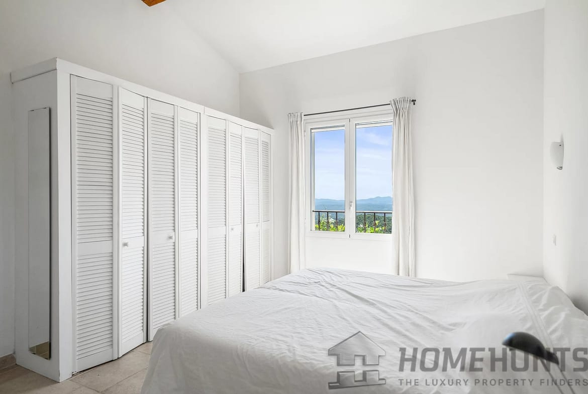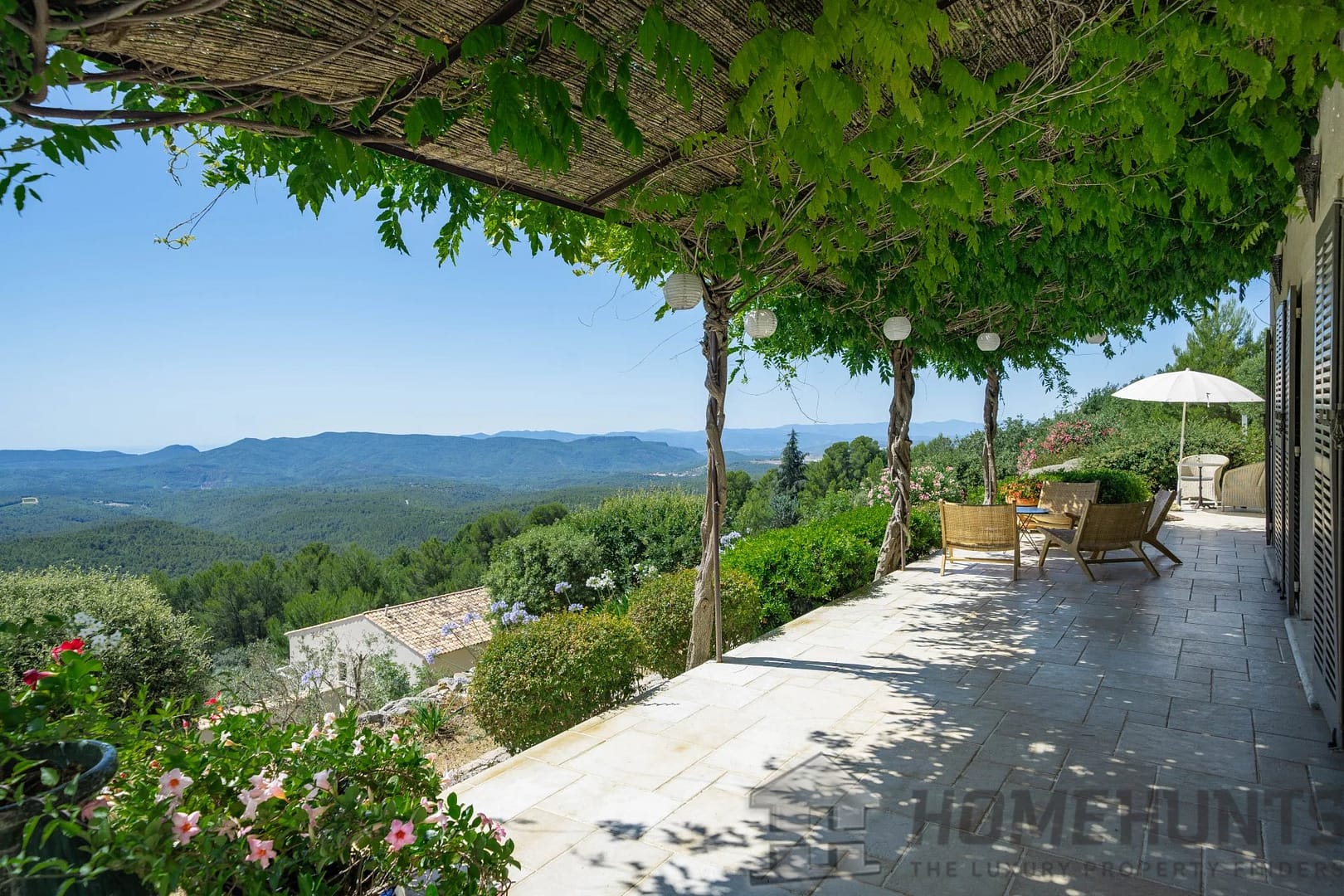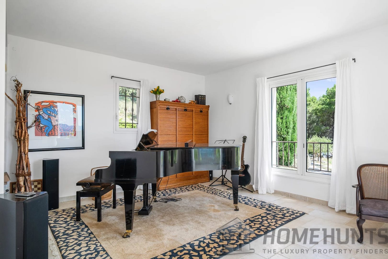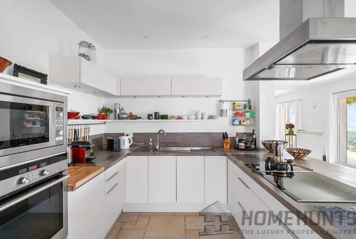 Set in a commanding position, this exquisite contemporary residence boasts spectacular panoramic views extending all the way to the sea. Flooded with natural light, it offers a grand living room opening onto an expansive covered terrace showcasing breathtaking vistas, along with a beautifully appointed kitchen with dining area and a second covered terrace, ideal for elegant summer evenings.