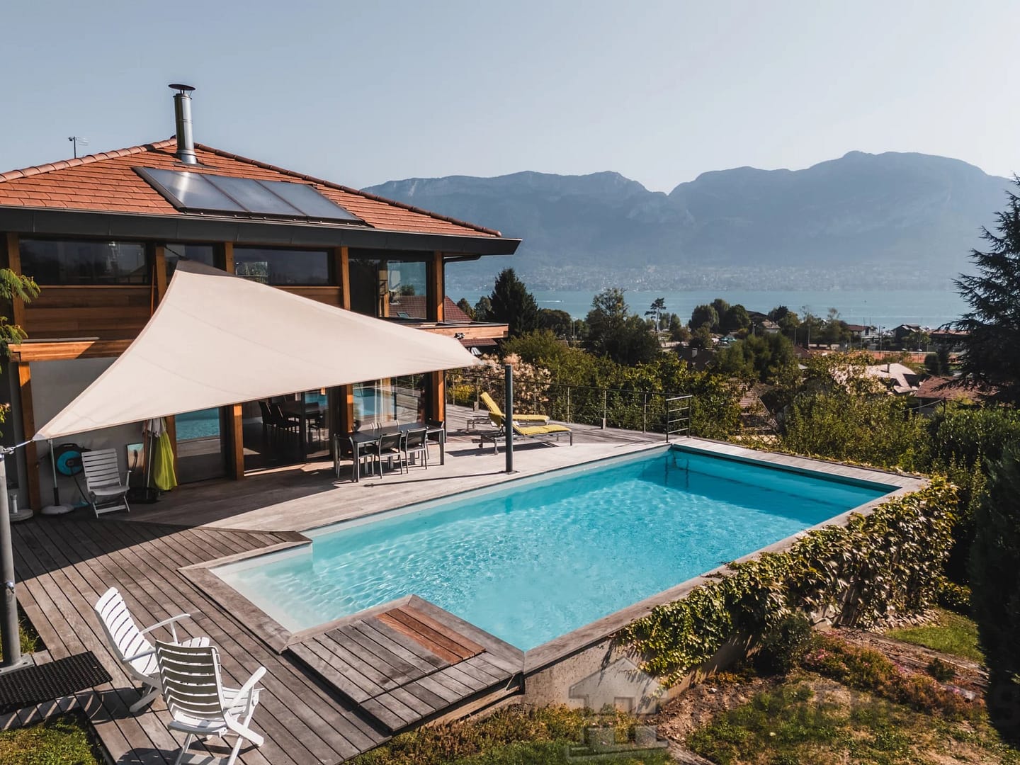 Technical features of this exceptional home are equally impressive: solar panels providing hot water for the house and pool, full thermal insulation with triple glazing, reversible air-to-water heat pump, 10 m3 rainwater recovery tank for irrigation and domestic use, underfloor heating and cooling, a comprehensive smart home system controlling lighting, blinds, heating, and alarms through various scenarios, and integrated Sonos audio in the main living areas.
