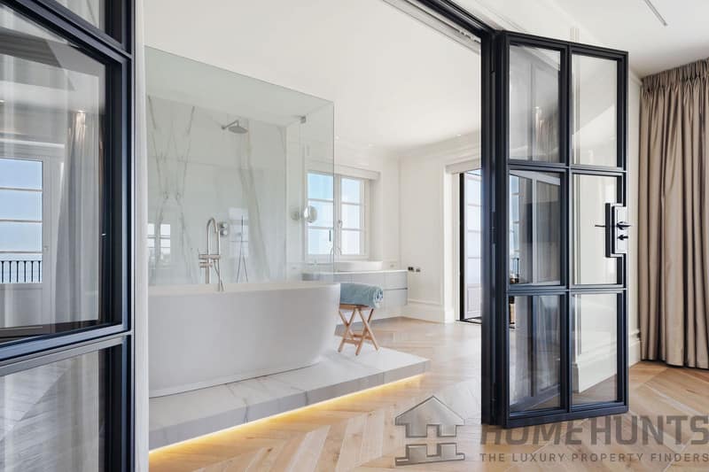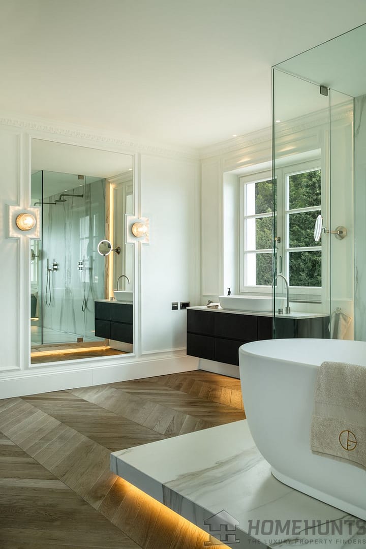Every space has been finished to the highest specifications, using natural elements and sophisticated furniture pieces. The flooring has Italian sourced Oak herringbone flooring which complements the neutral colour palette of this luxurious home.