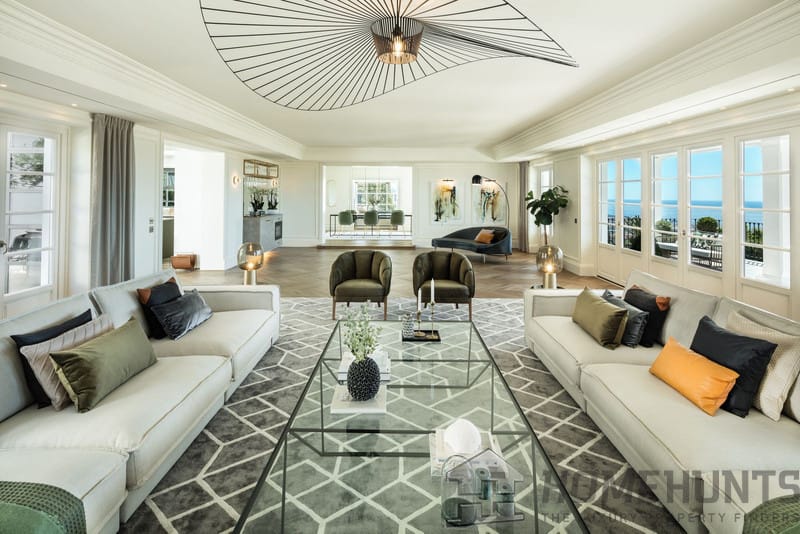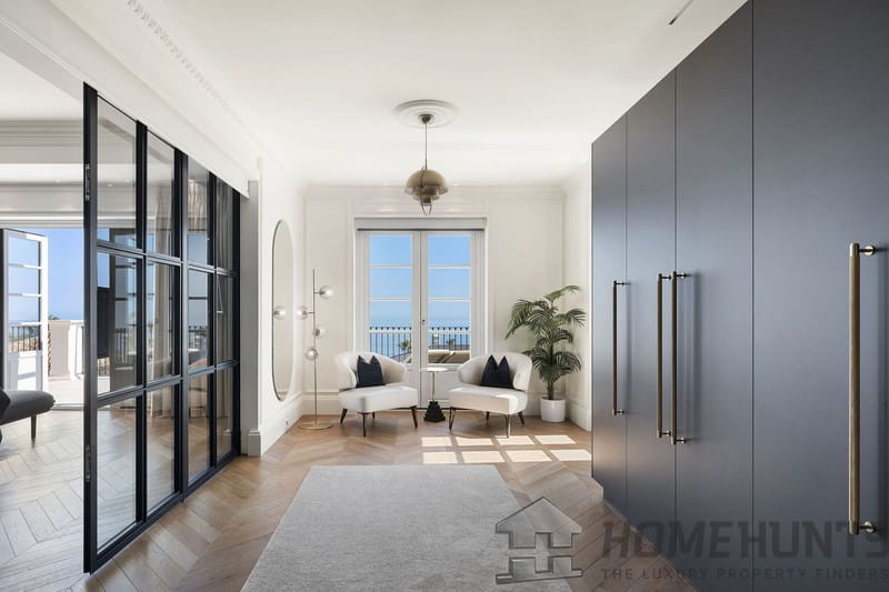 The ground floor has several connected living spaces, each with views to the magnificent garden/sea plus one bedroom with en-suite bathroom/walk in closet.