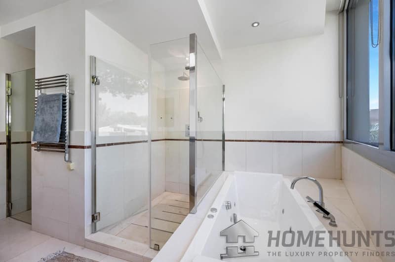 Two spacious bedrooms, each with its own luxurious en-suite bathroom, plus an additional guest bathroom.
