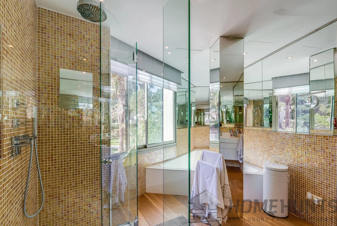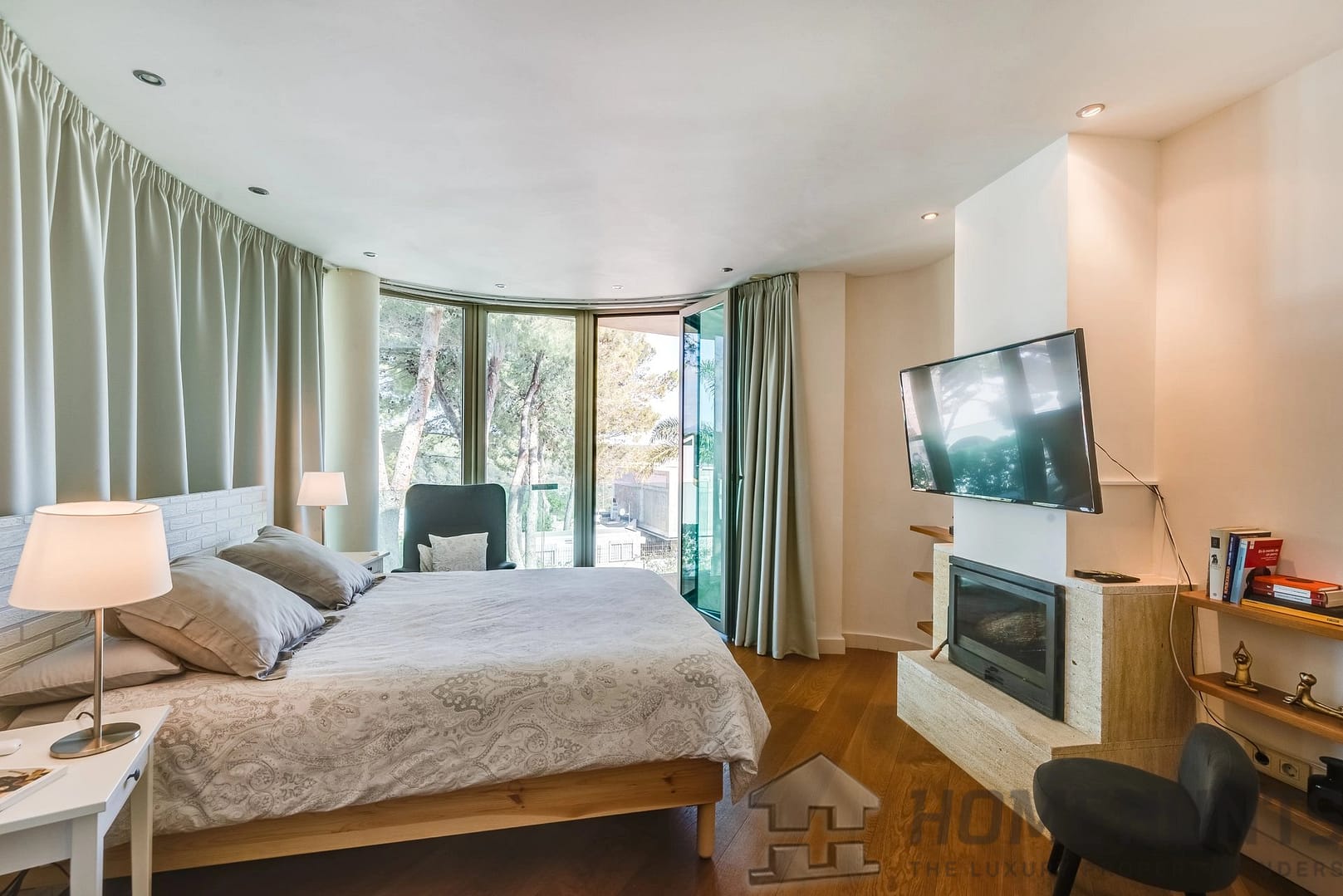– On the main floor, a spacious open concept living area with fireplace and large glass windows connects harmoniously with the terrace, pool and garden. On this level there is also a separate fully equipped kitchen, laundry room, pantry, as well as two bedrooms and two bathrooms.