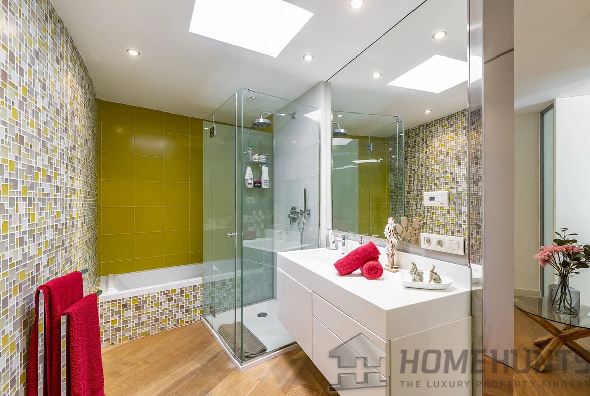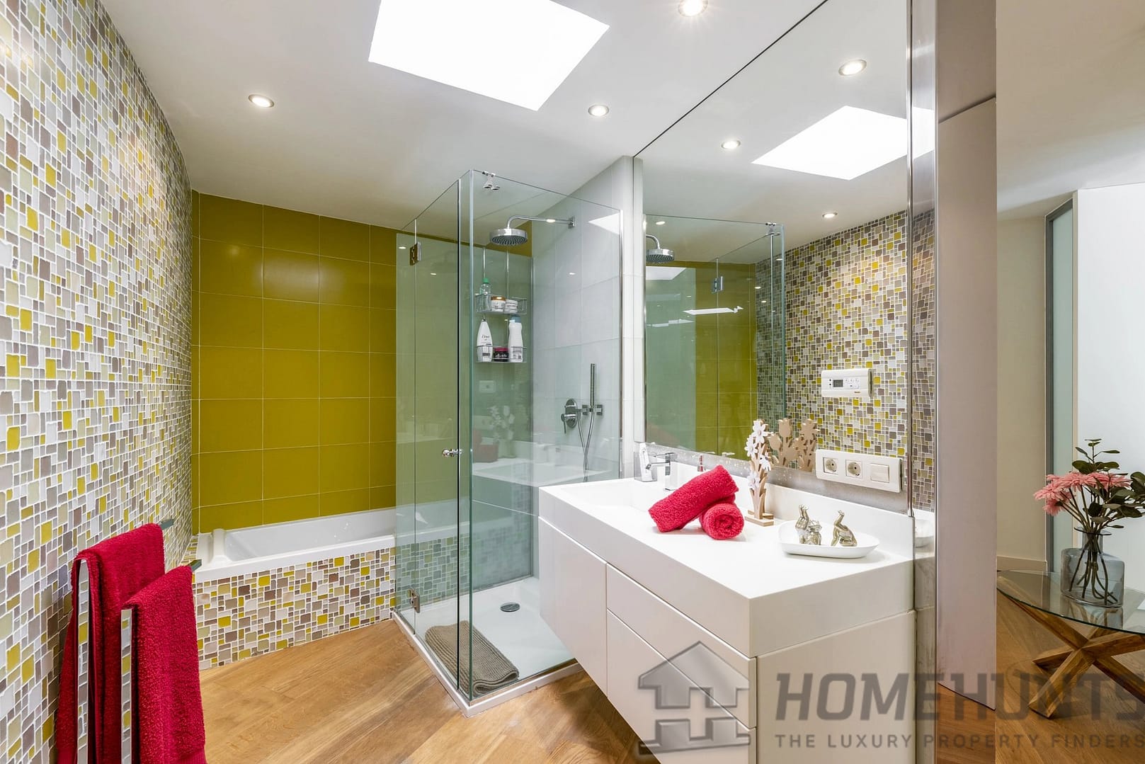 – An open staircase leads to the upper floor, where two additional double bedrooms are located, both with en suite bathrooms and access to a private terrace.