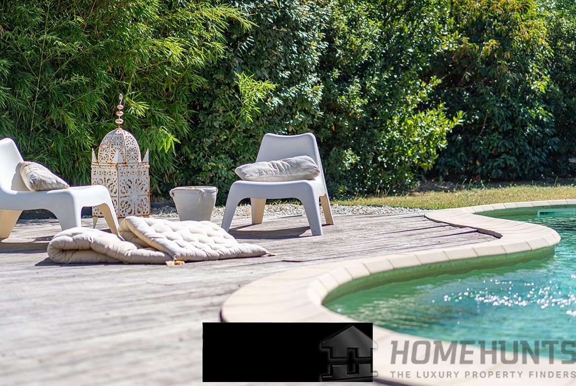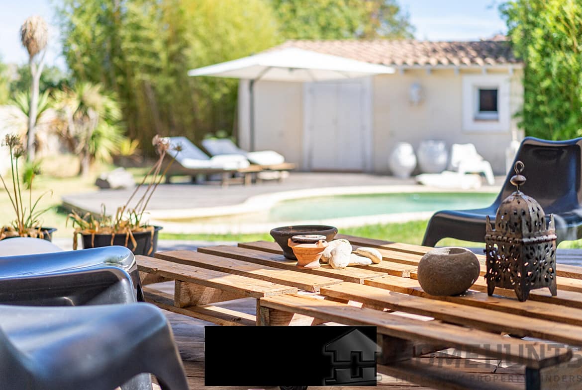 The landscaped garden offers several spaces such as a terrace accessible from the house, a swimming pool with submerged beach and exotic wooden beach, as well as a pool house which can easily accommodate an additional bedroom.