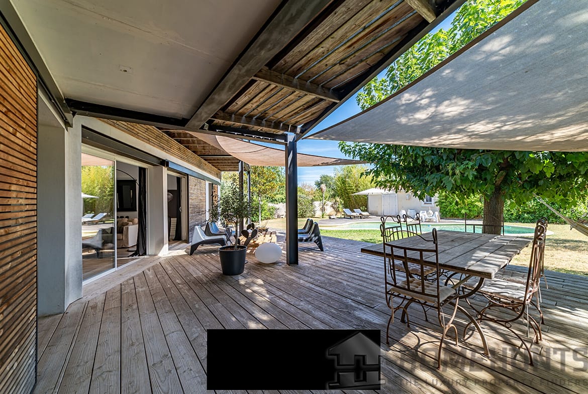 10 minutes north of Sommieres, you will discover this unique 190 m2 house subtly integrated into the heart of its beautiful garden with swimming pool.