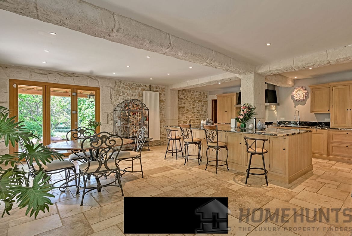 The property, benefiting from a recent high-quality renovation, elegantly combines old-world charm with modern comfort. Upon arrival, we discover the beautiful natural stone facades that testify to the character and authenticity of the farmhouse. The interior reveals very beautiful volumes and a harmonious distribution of spaces. The vaulted living room, approximately 73 m2, impresses with its high ceilings and warm atmosphere, highlighted by a stone fireplace and an open mezzanine that extends the space with lightness. The 57 m2 eat-in kitchen embodies elegance and conviviality: fitted with noble materials and very high-end equipment, it has been designed as a true living space, ideal for cooking, entertaining and sharing beautiful moments. This large kitchen opens onto a covered outdoor space designed as a warm summer lounge, open to the surrounding nature.