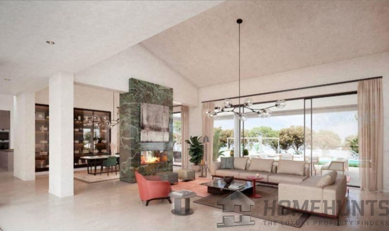 On the ground floor, a large living room has been designed, separated from the dining room by a column-fireplace for colder days. The kitchen will be very functional and will be open to the terrace and pool through a porch where you can set up a large dining table to take advantage of the good weather most of the year.