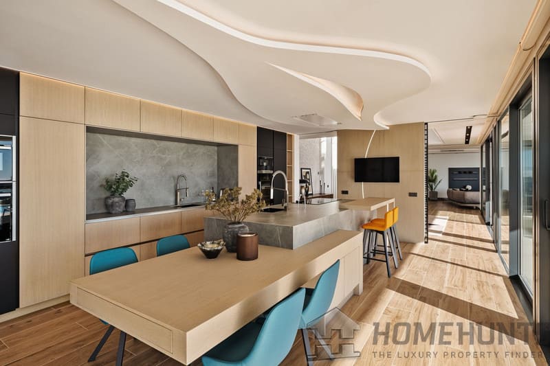 Beautifully presented and superbly equipped, the eco-friendly and energy-efficient home comes for sale in excellent condition and with many luxurious features. Thanks to glass doors and huge windows, there is plenty of natural light. Additional highlights include a Home automation system, air-conditioning, wooden and stone floors with underfloor heating throughout the house, double-glazing, Internet Wi-Fi, fitted wardrobes, etc.