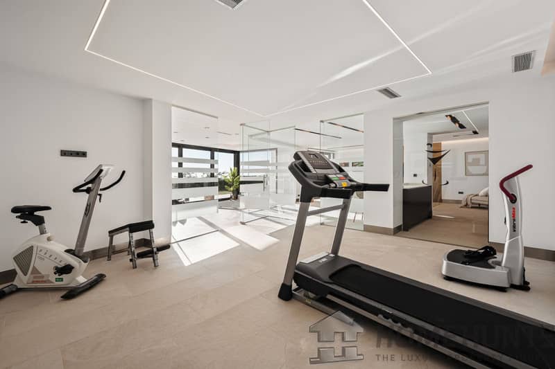 Boasting exceptional features, this luxurious home ensures comfort and convenience. It features 4 ensuite bedrooms, another guest bedroom with a separate modern chic bathroom and three toilets. Spacious dining and living areas leading to the terraces are ideal for entertaining family members and guests. An open plan, fully fitted minimalist-style kitchen with top quality appliances, basement, private garage, storage, utility and laundry areas cater to all your practical needs. The property also features a gym with a bathroom, Jacuzzi, sauna and steam shower.
