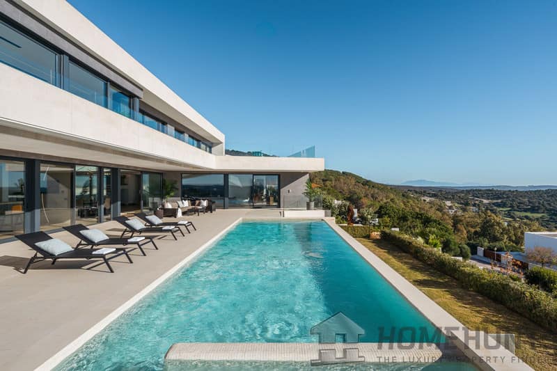 A stunning 5-bedroom modern villa for sale is nestled mountainside in prestigious Sotogrande, one of the most sought-after luxury resorts in Europe.