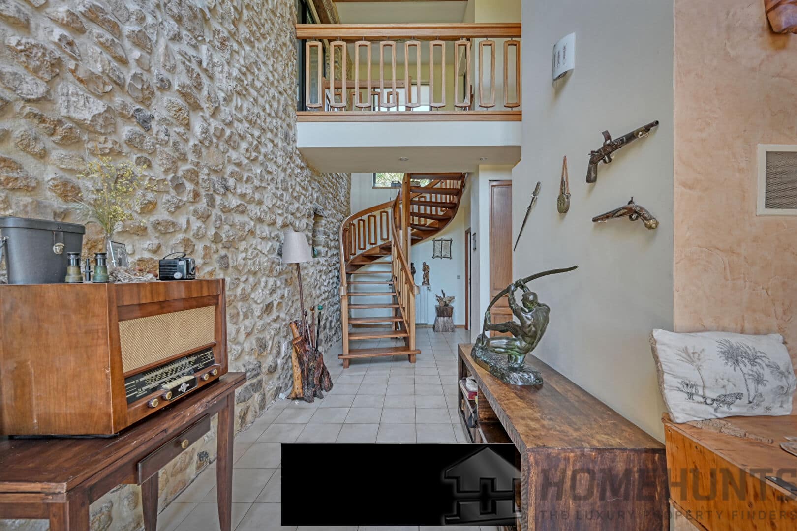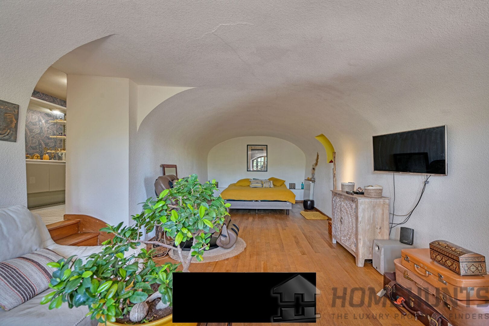 The 7,561 m2 land is a true haven of peace, planted with multiple Mediterranean species and fruit trees: olive trees, truffle trees, apricot trees, apple trees, raspberry trees, quince trees, etc. A vegetable garden completes this bucolic ensemble. A rainwater collection system is also present, with several taps distributed at different levels of the garden, allowing you to maintain your garden with complete peace of mind.