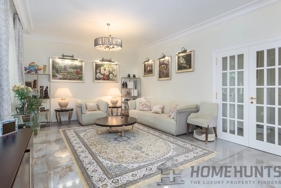 Inside, the villa offers a spacious living space, including a large living room with a covered terrace, a fully equipped modern kitchen, a comfortable bedroom as well as a majestic master bedroom with dressing room and a large bathroom including a sauna.